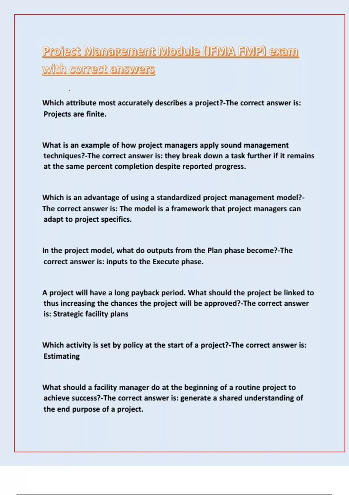 and controlling project work, what do they not need to verify?-The correct