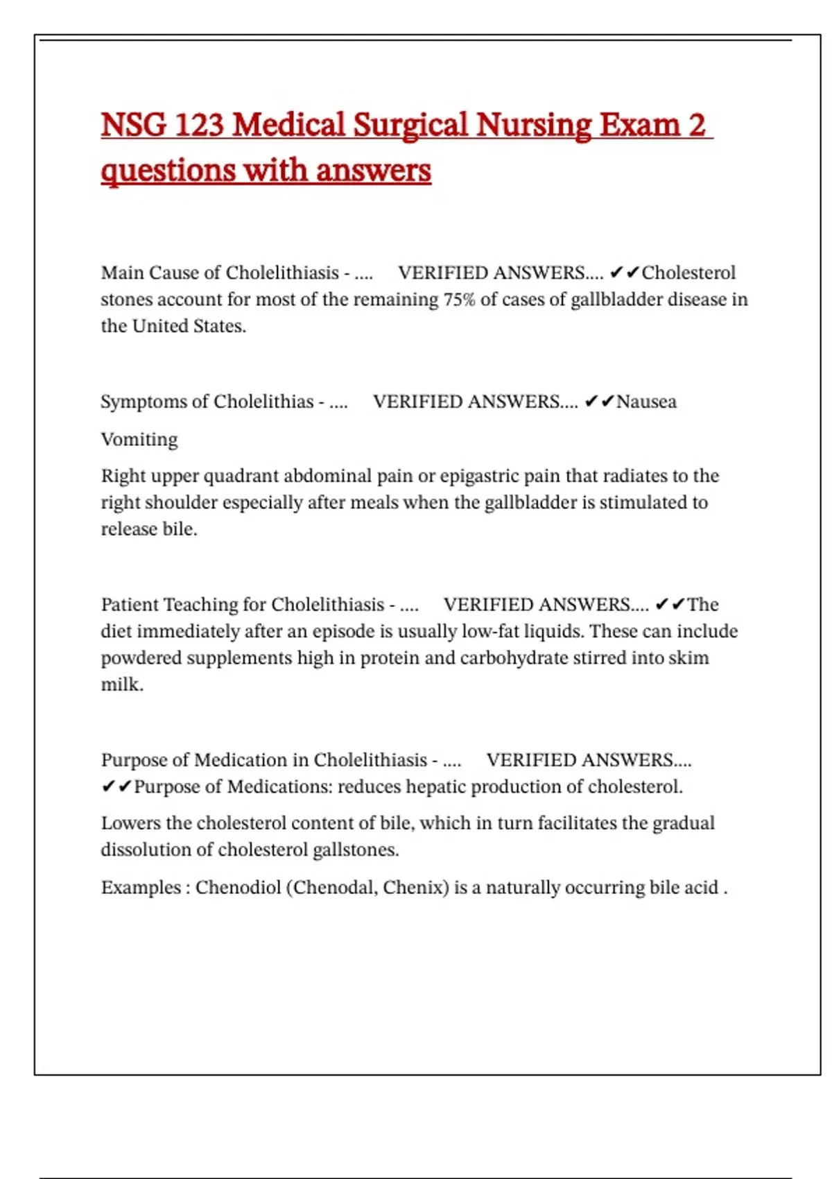 Patient Teaching for Cholelithiasis - ....🔰VERIFIED ANSWERS.... ✔✔The
