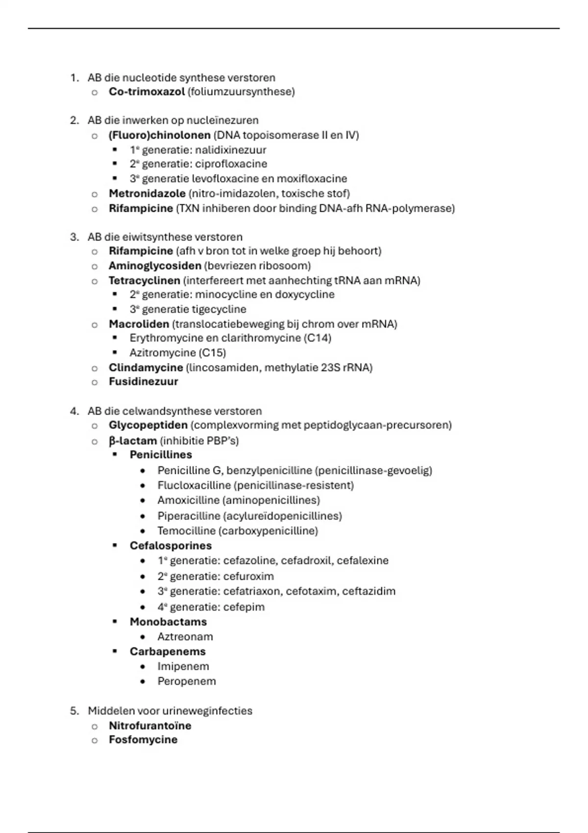 o Glycopeptiden (complexvorming met peptidoglycaan-precursoren)