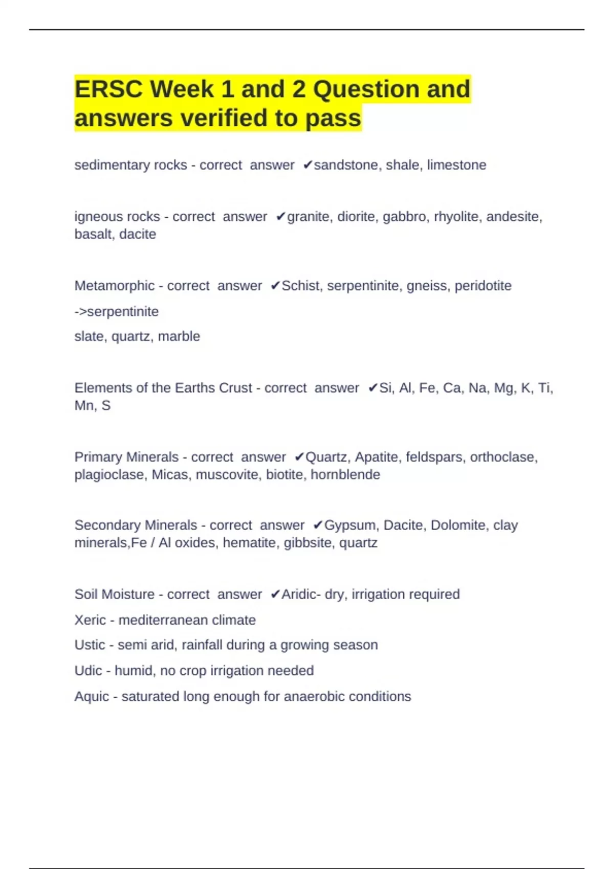 Secondary Minerals - correct answer ✔Gypsum, Dacite, Dolomite, clay