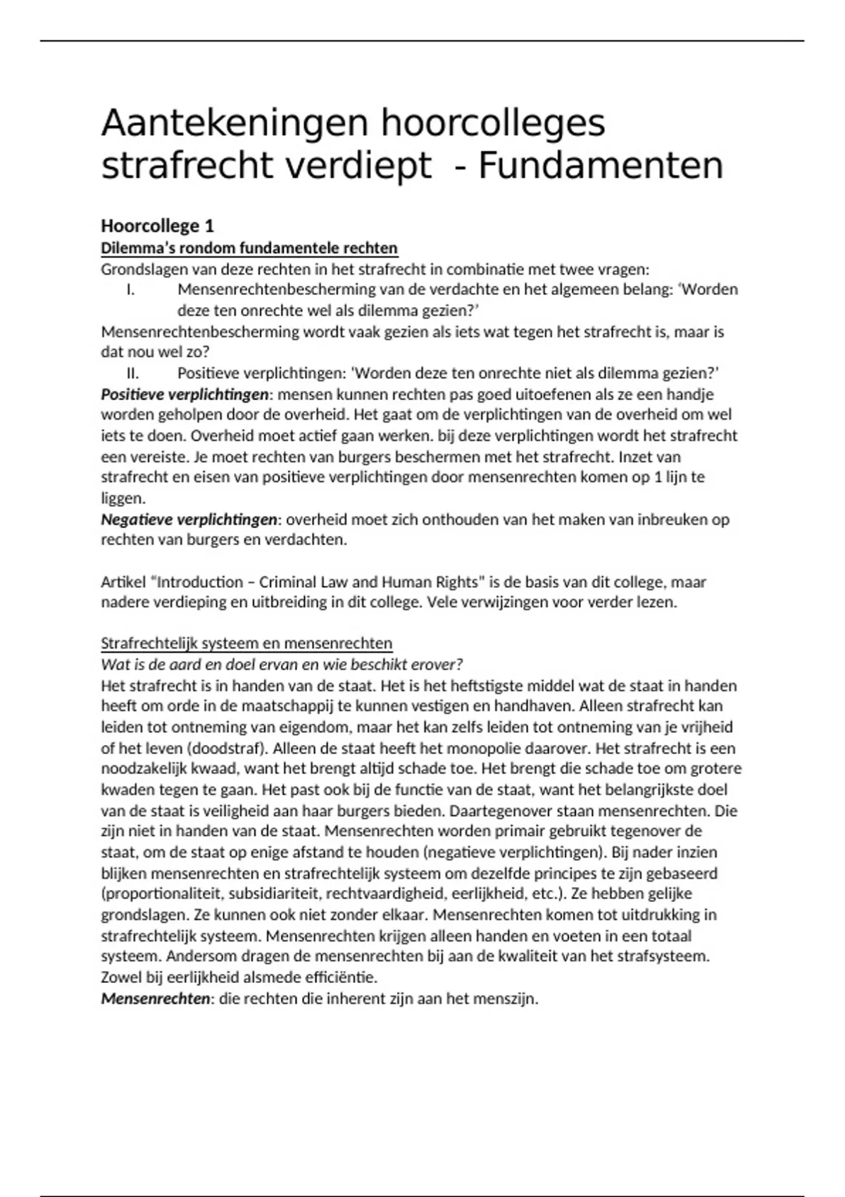 College aantekeningen Straf(proces)recht verdiept (JUR-1STRF)