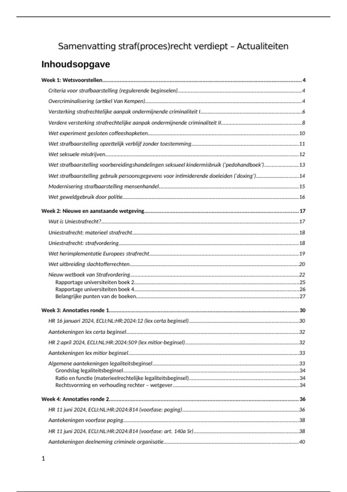 Aantekeningen lex mitior beginsel.....................................................................................................................33