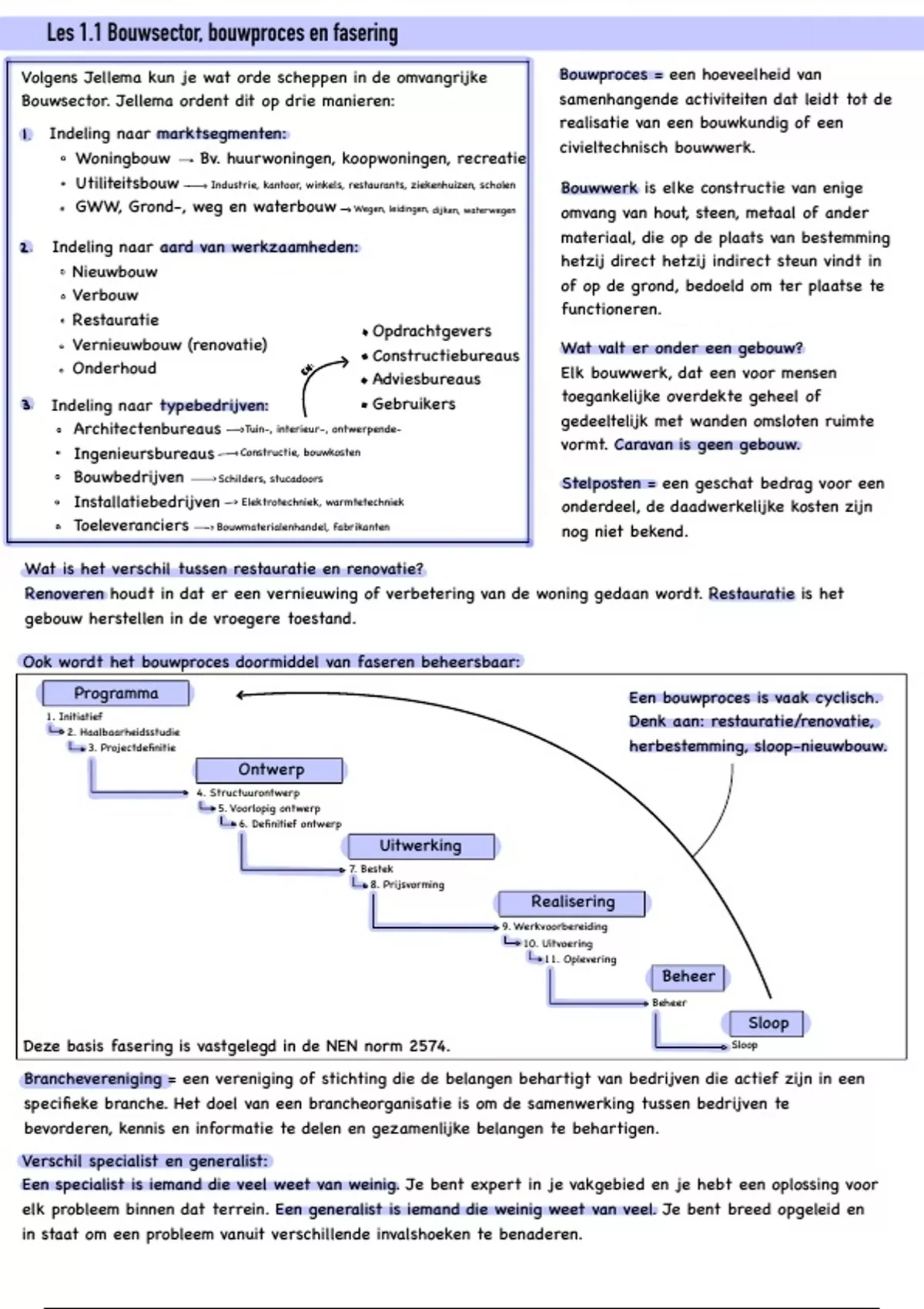 , Les 1.1 Bouwsector, bouwproces en fasering