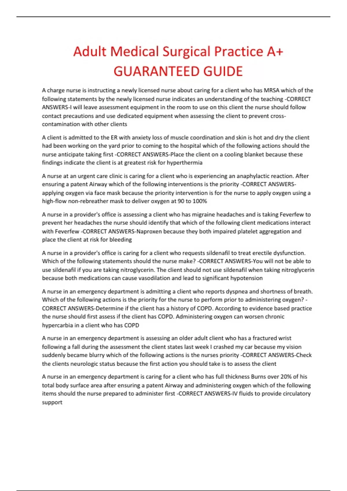 Adult Medical Surgical Practice A+ GUARANTEED GUIDE