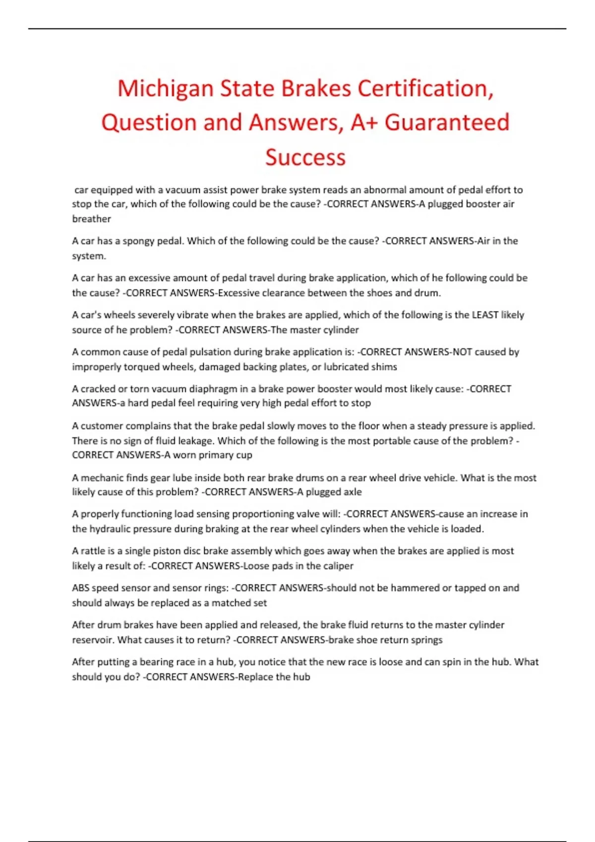 CORRECT ANSWERS-Clean the master cylinder with a degreasing solvent