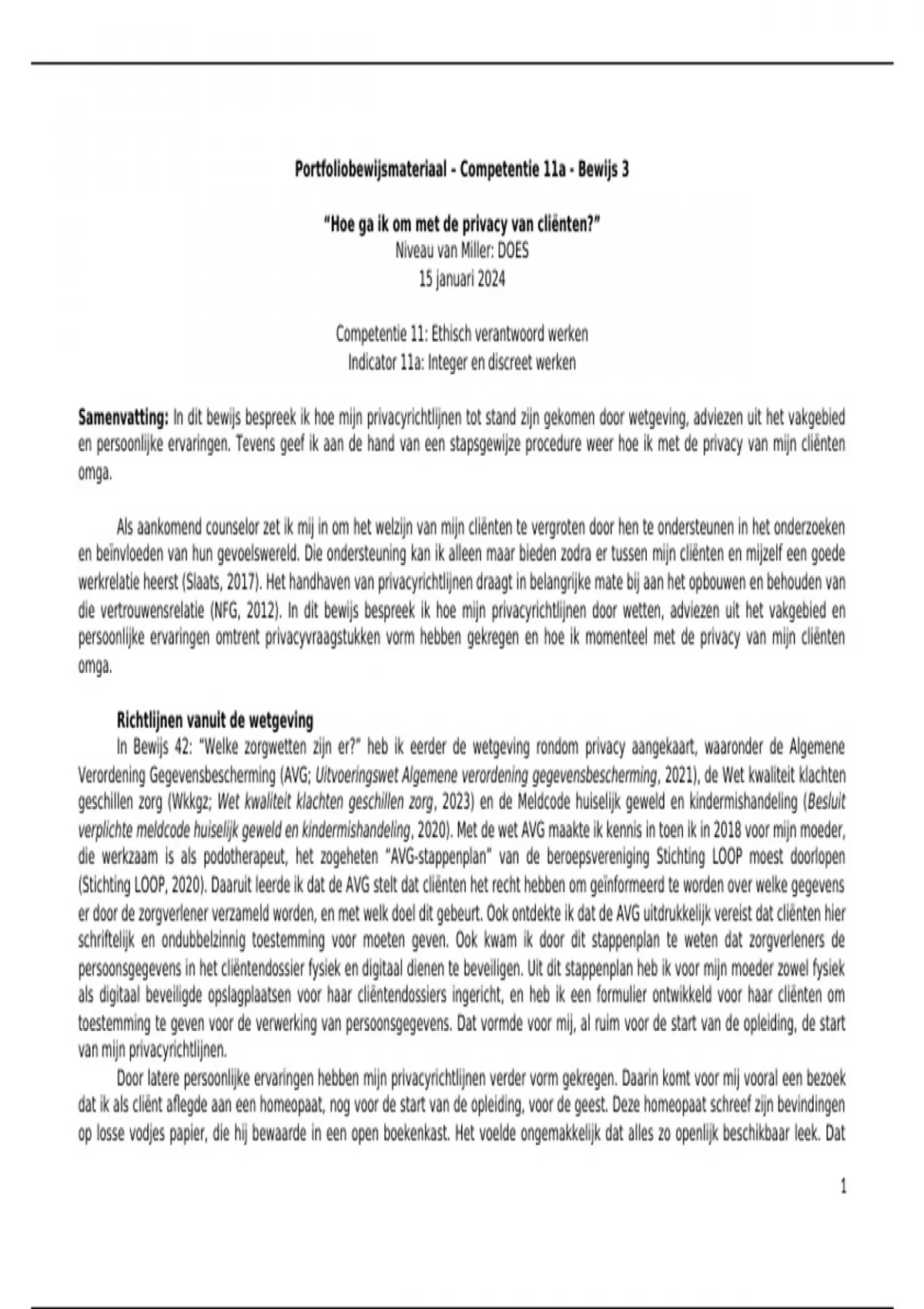 werd omtrent de privacy van mijn cliënten. Eerder heb ik hiervoor de richtlijnen van de Nederlandse Federatie Gezondheidszorg (NFG), de