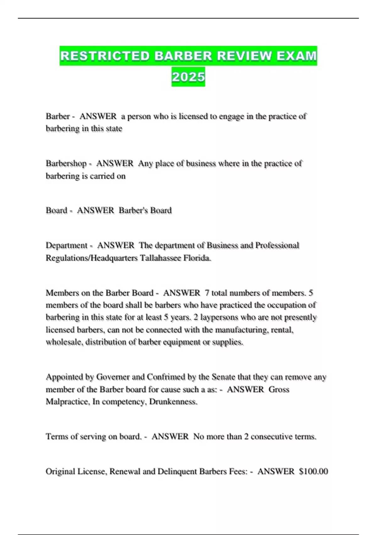 RESTRICTED BARBER REVIEW EXAM 2025...