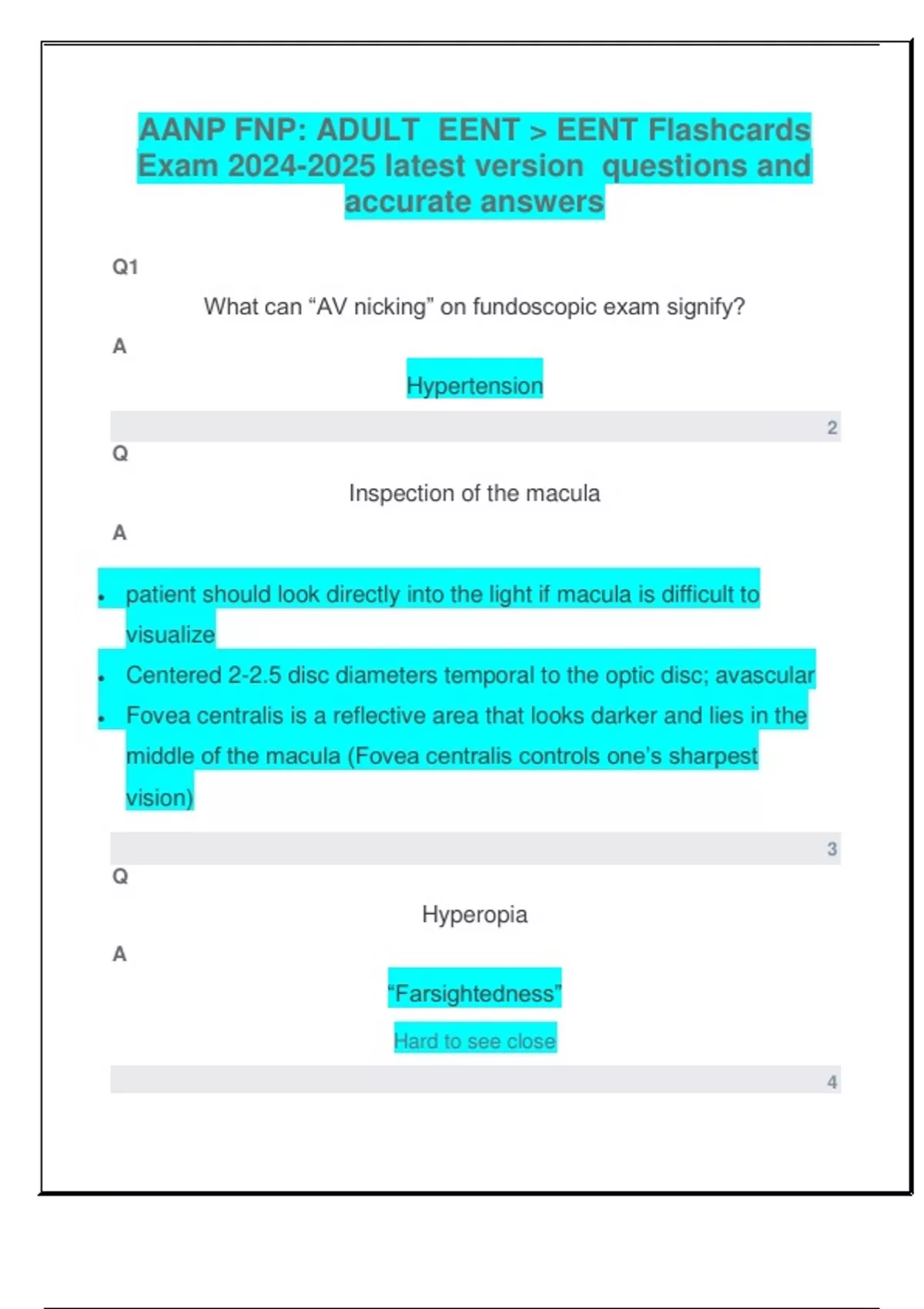 Exam 2024-2025 latest version questions and
