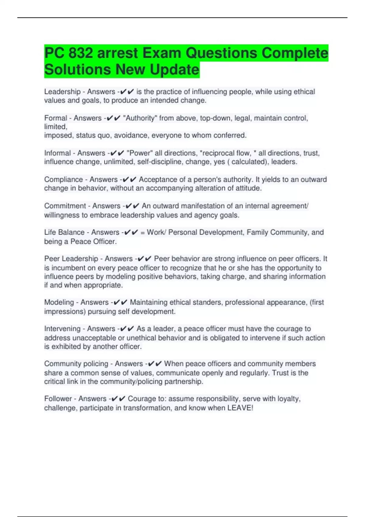 Ethical decision making and leadership - Answers -✔✔ Peace officers who practice the