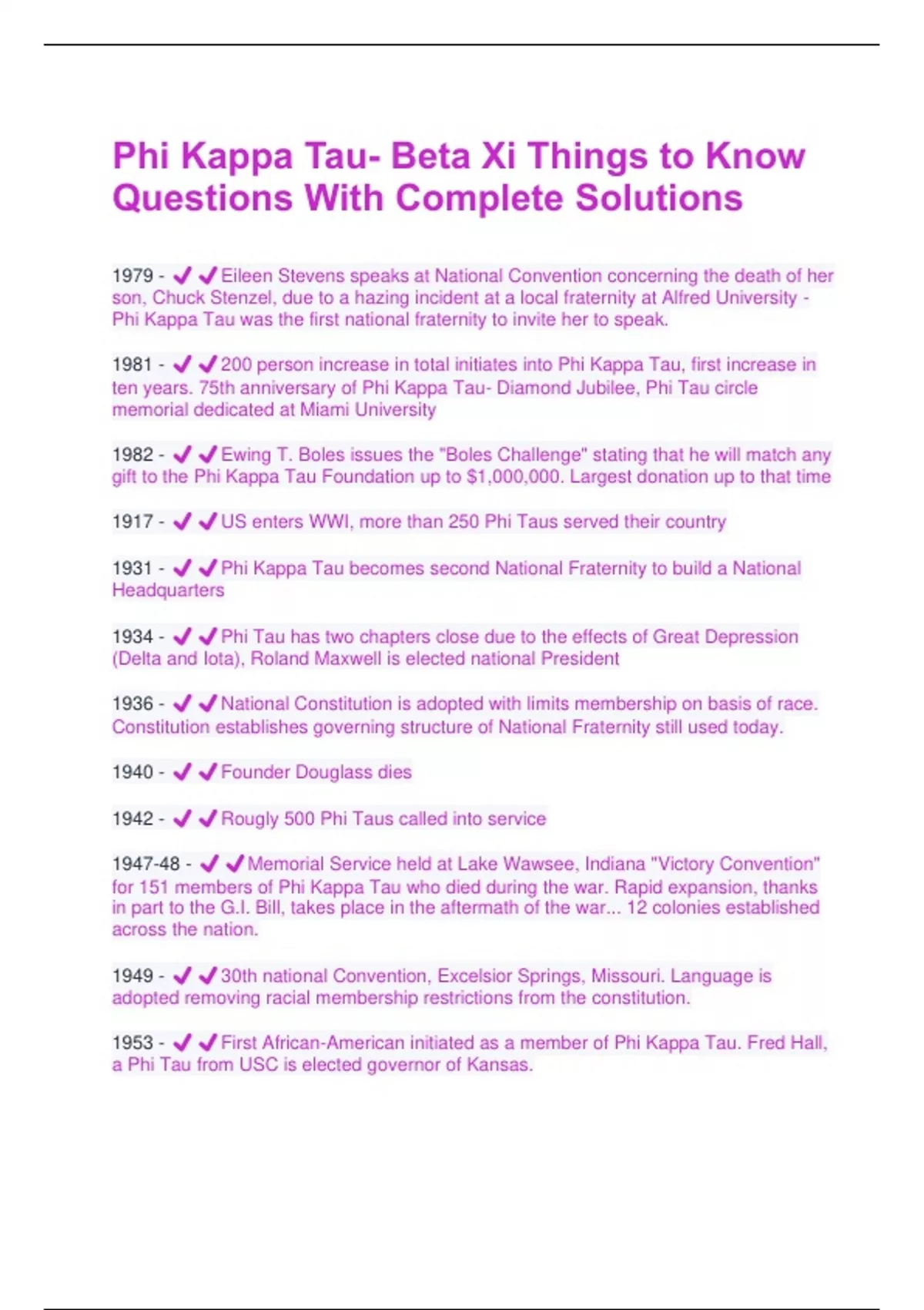 Phi Kappa Tau- Beta Xi Things to Know Questions With Complete Solutions