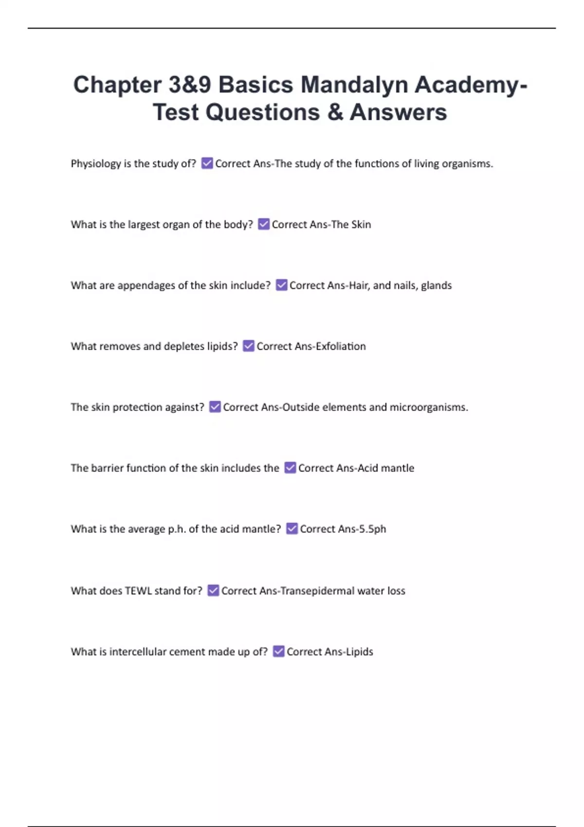The skin protection against? Correct Ans-Outside elements and microorganisms.