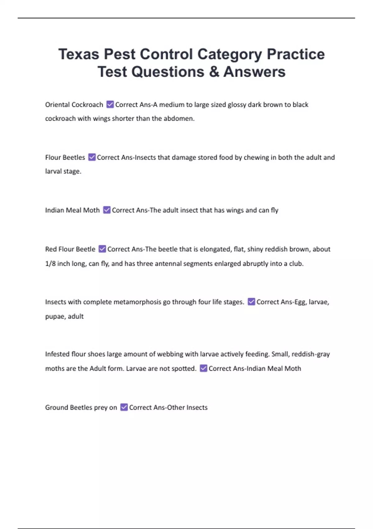 Flour Beetles Correct Ans-Insects that damage stored food by chewing in both the adult and