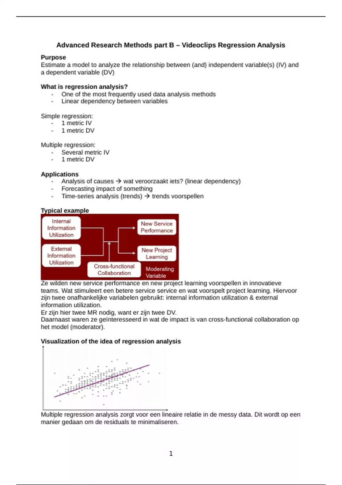 Multiple regression analysis zorgt voor een lineaire relatie in de messy data. Dit wordt op een