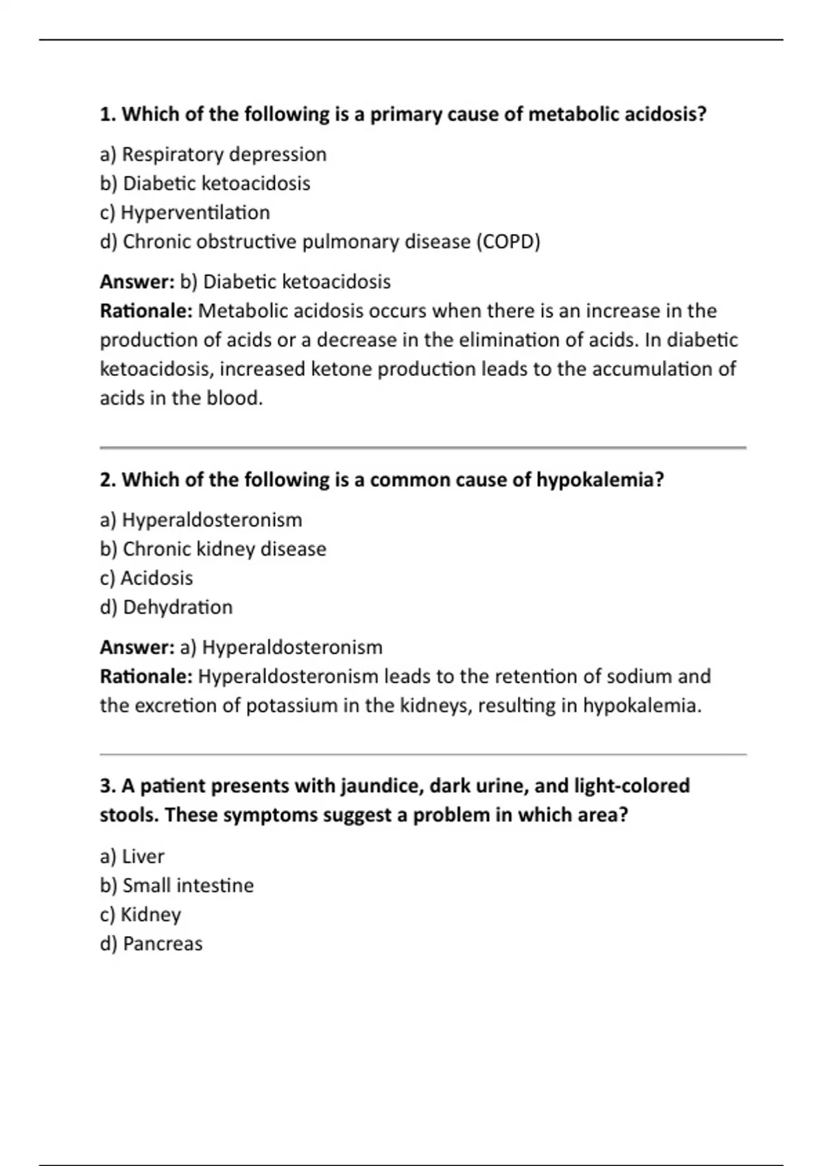 Rationale: Metabolic acidosis occurs when there is an increase in the
