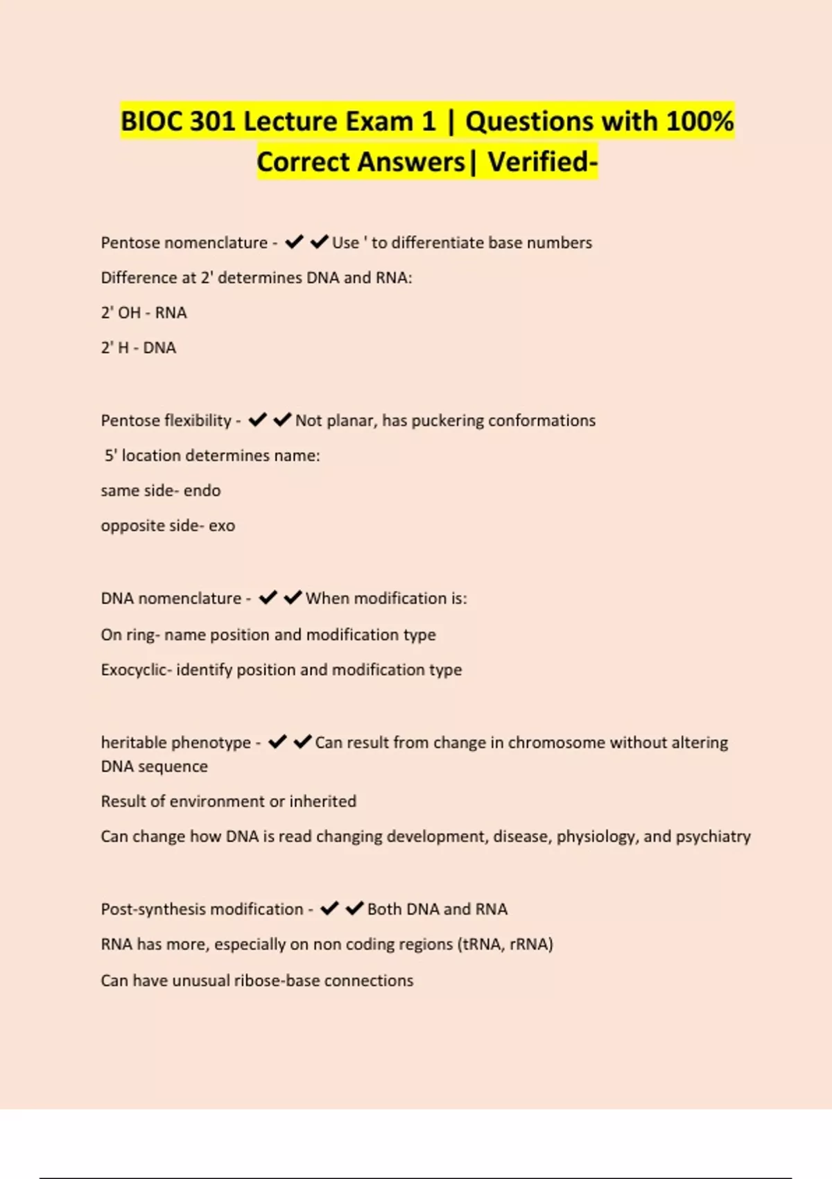BIOC 301 Lecture Exam 1 | Questions with 100%