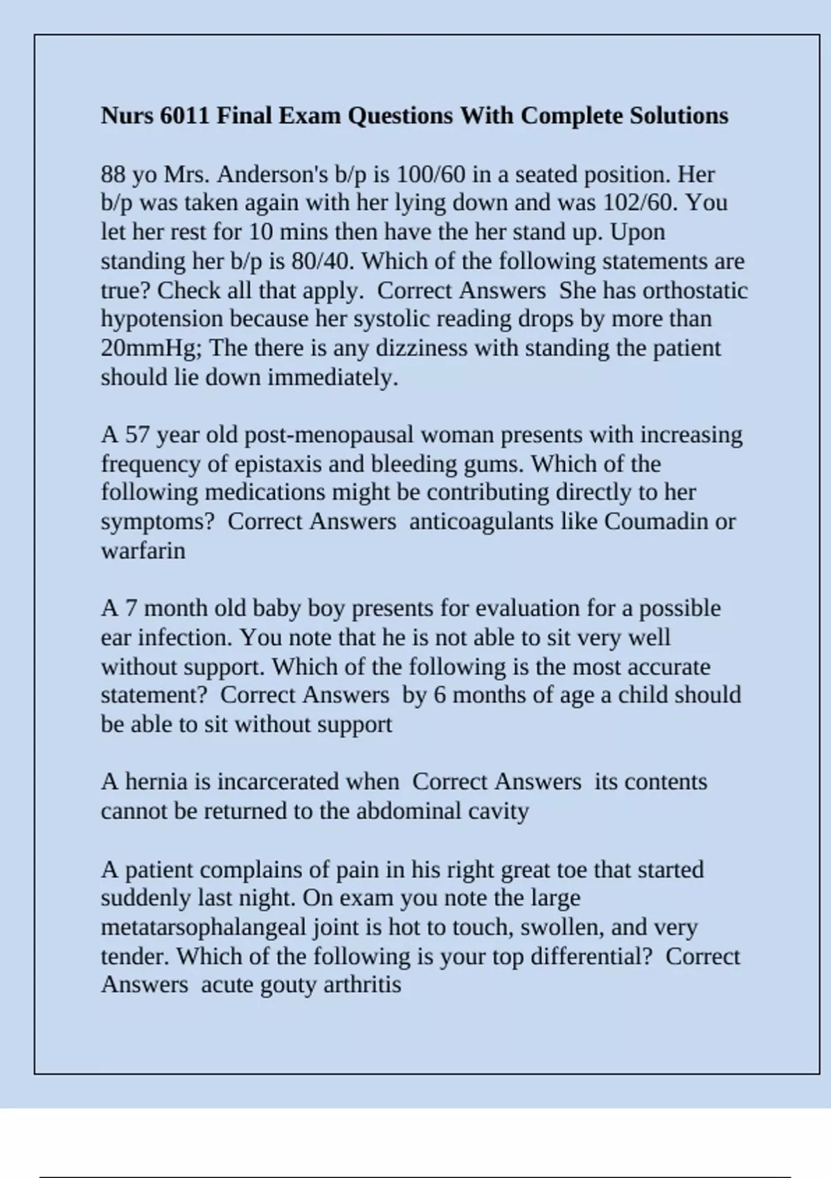 would you suspect based on this description? Correct Answers