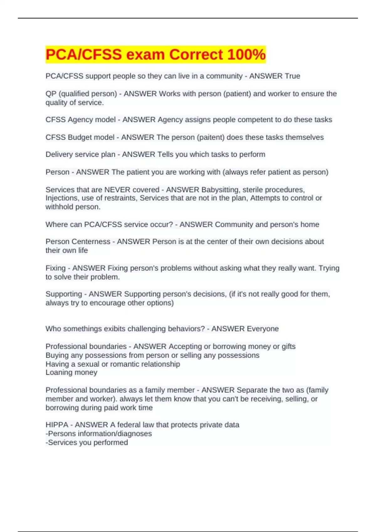 PCA/CFSS support people so they can live in a community - ANSWER True