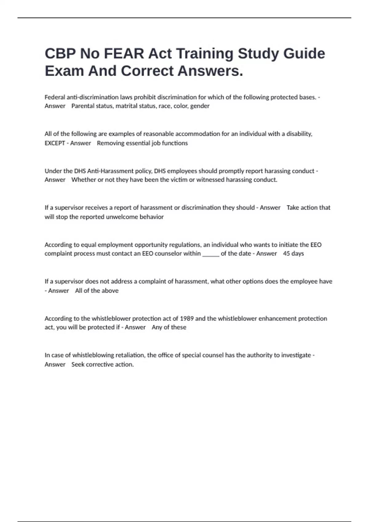 If a supervisor receives a report of harassment or discrimination they should - Answer Take action that