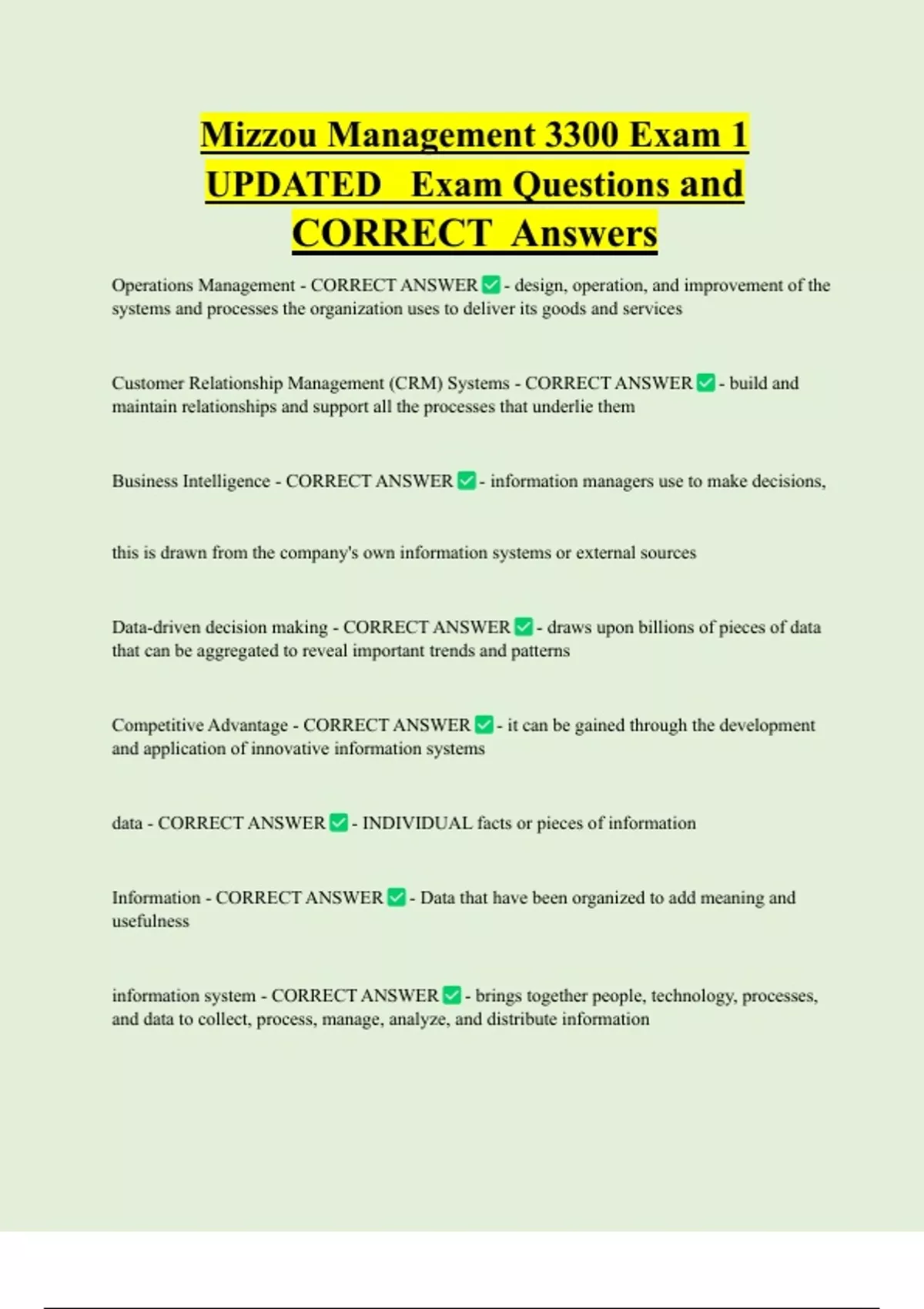 UPDATED Exam Questions and
