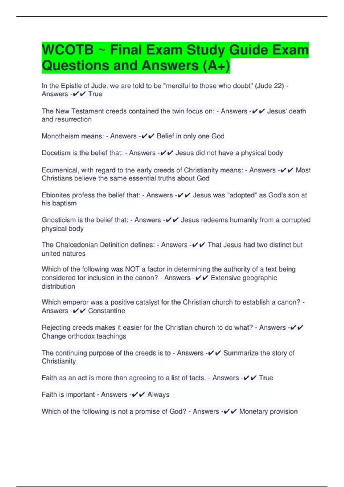 The New Testament creeds contained the twin focus on: - Answers -✔✔ Jesus' death