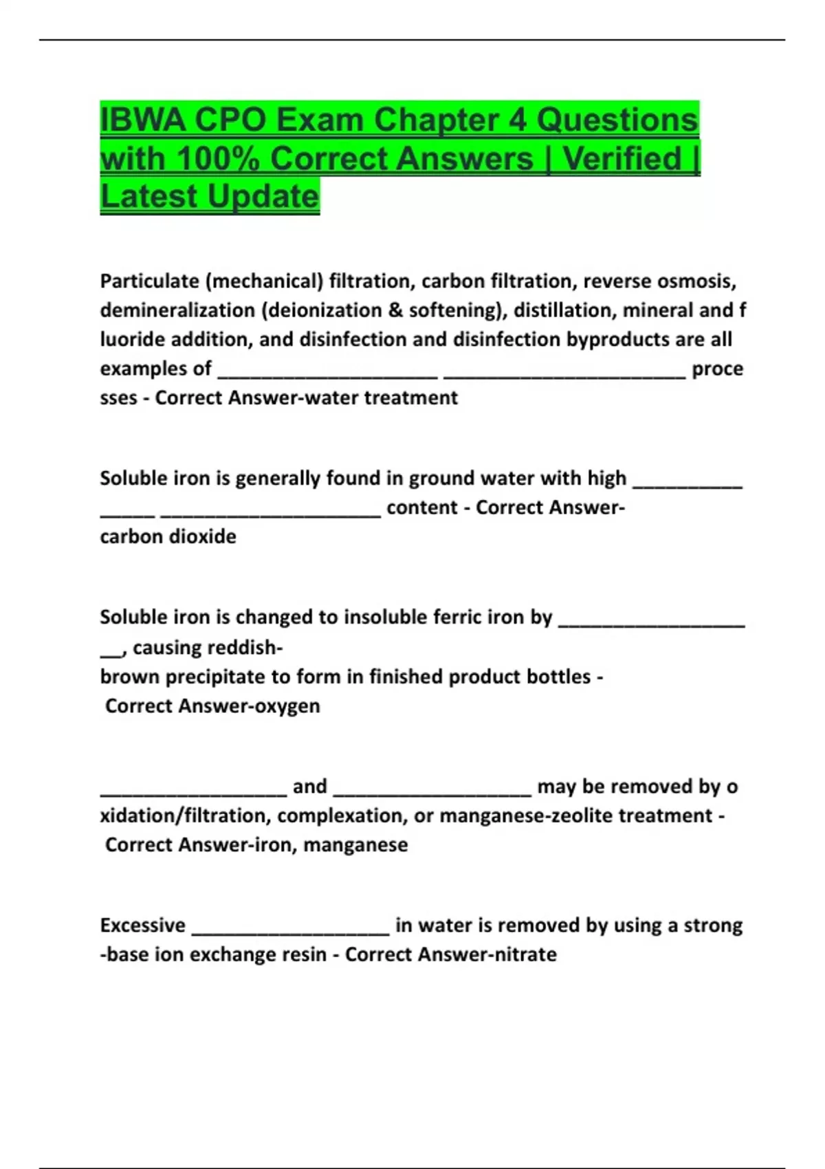 IBWA CPO Exam Chapter 4 Questions with 100% Correct Answers | Verified | Latest Update