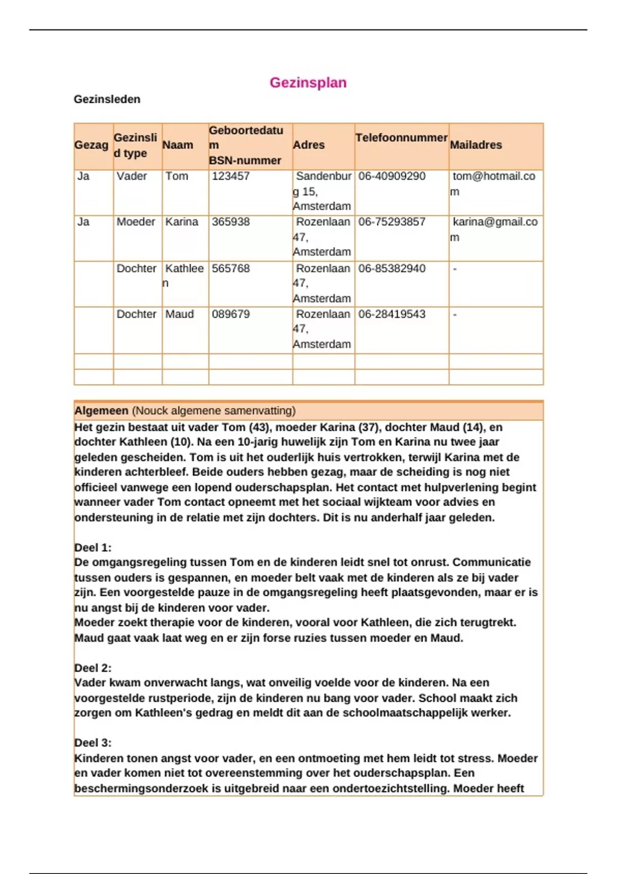 In dit verslag staat het gezinsplan van een casus die we hebben gekregen van InHolland.