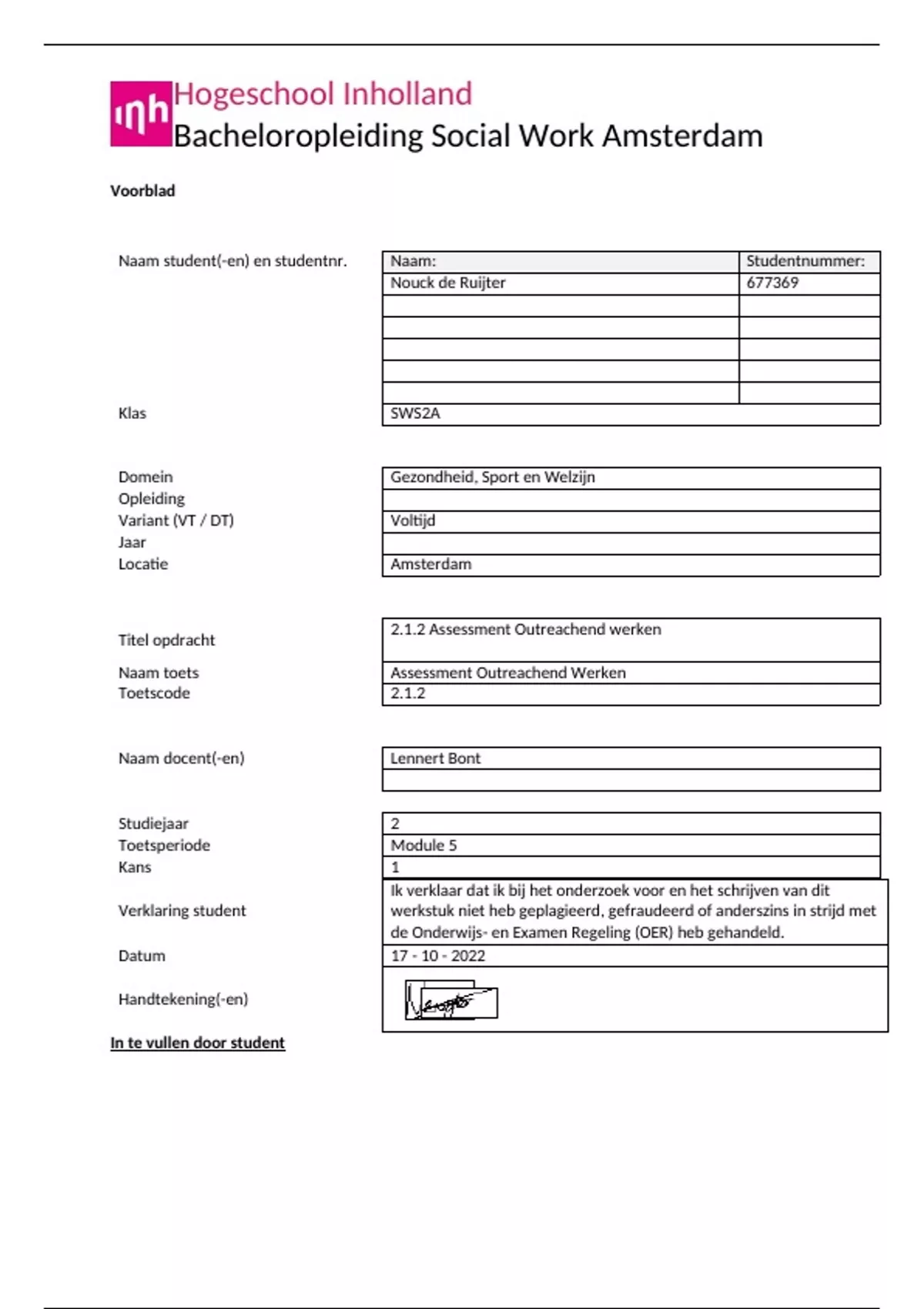 2.1.2 Assesment outreachend werken (cijfer 7)