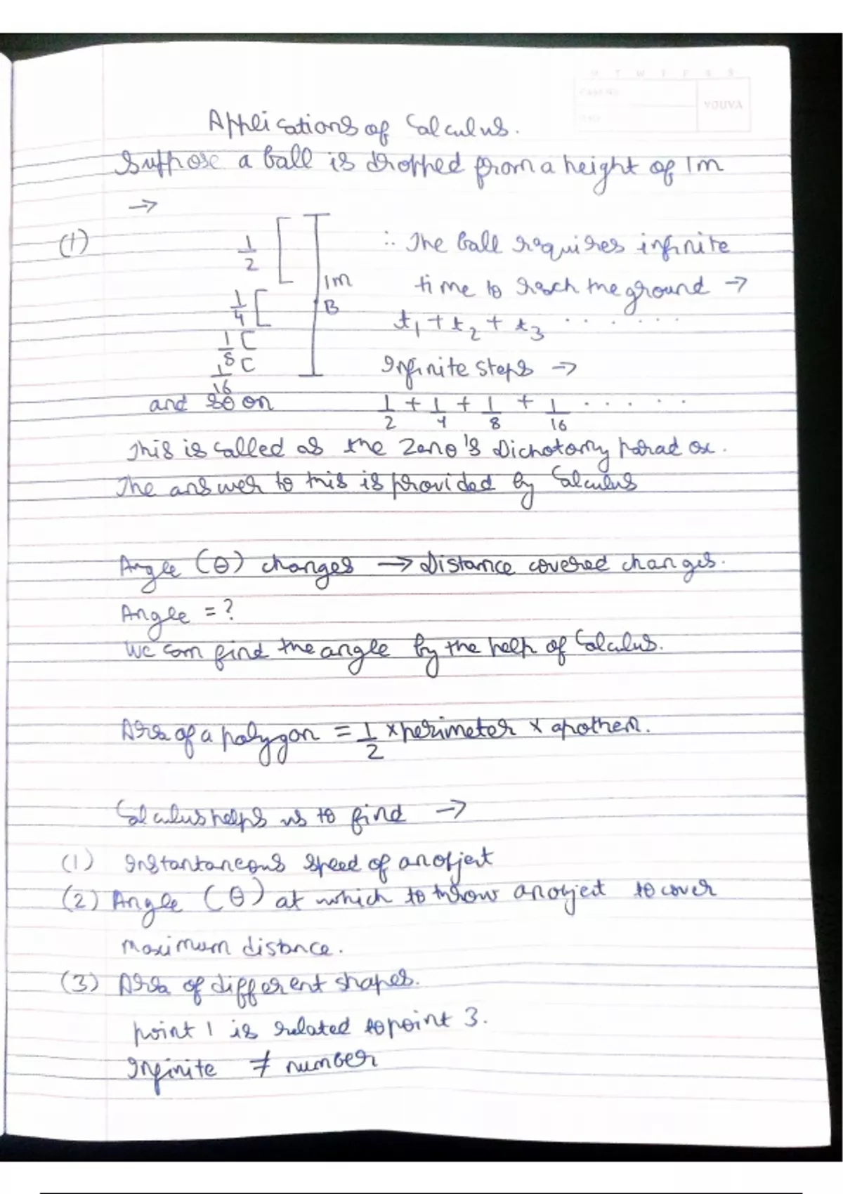 In this document you will be able to understand the basics of Calculus as well high level concepts of it. The document includes topics like Application of Calculus, Limits (Explained with the help of Graphs), Basic understanding of the functions, Derivatives and much more. Every topic is covered in detail as well as easy to understand language, you will also be able to understand from the graphs drawn in the document.
