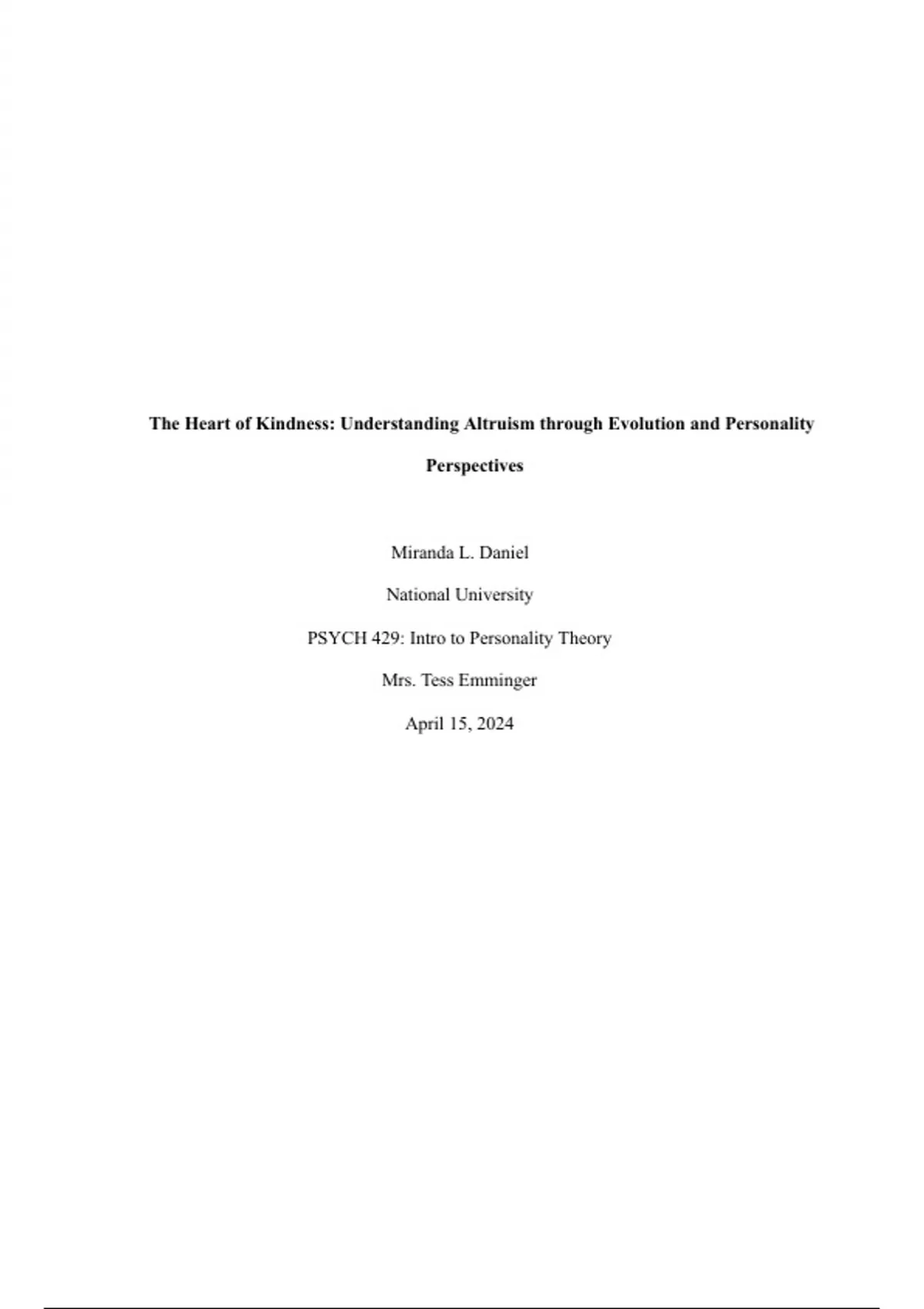 The Heart of Kindness: Understanding Altruism through Evolution and Personality
