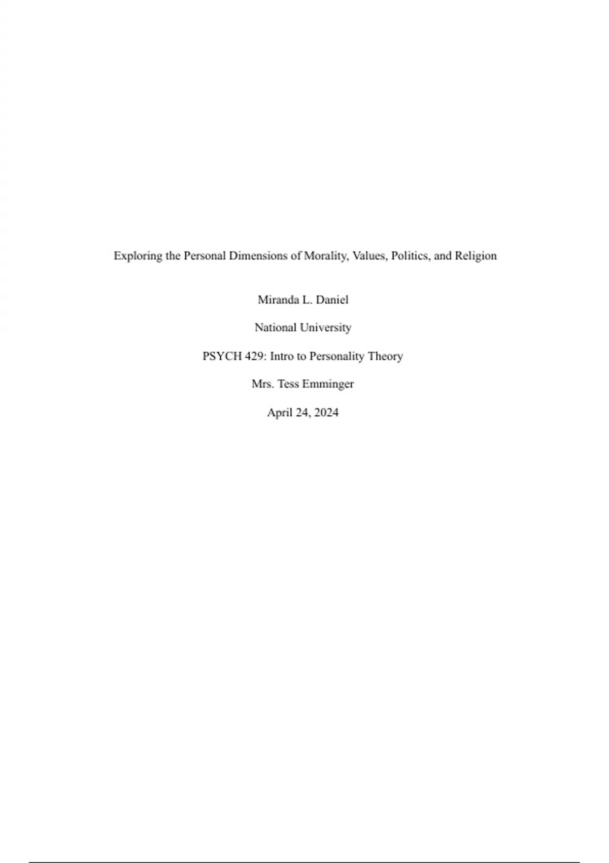 PSYCH 429: Intro to Personality Theory