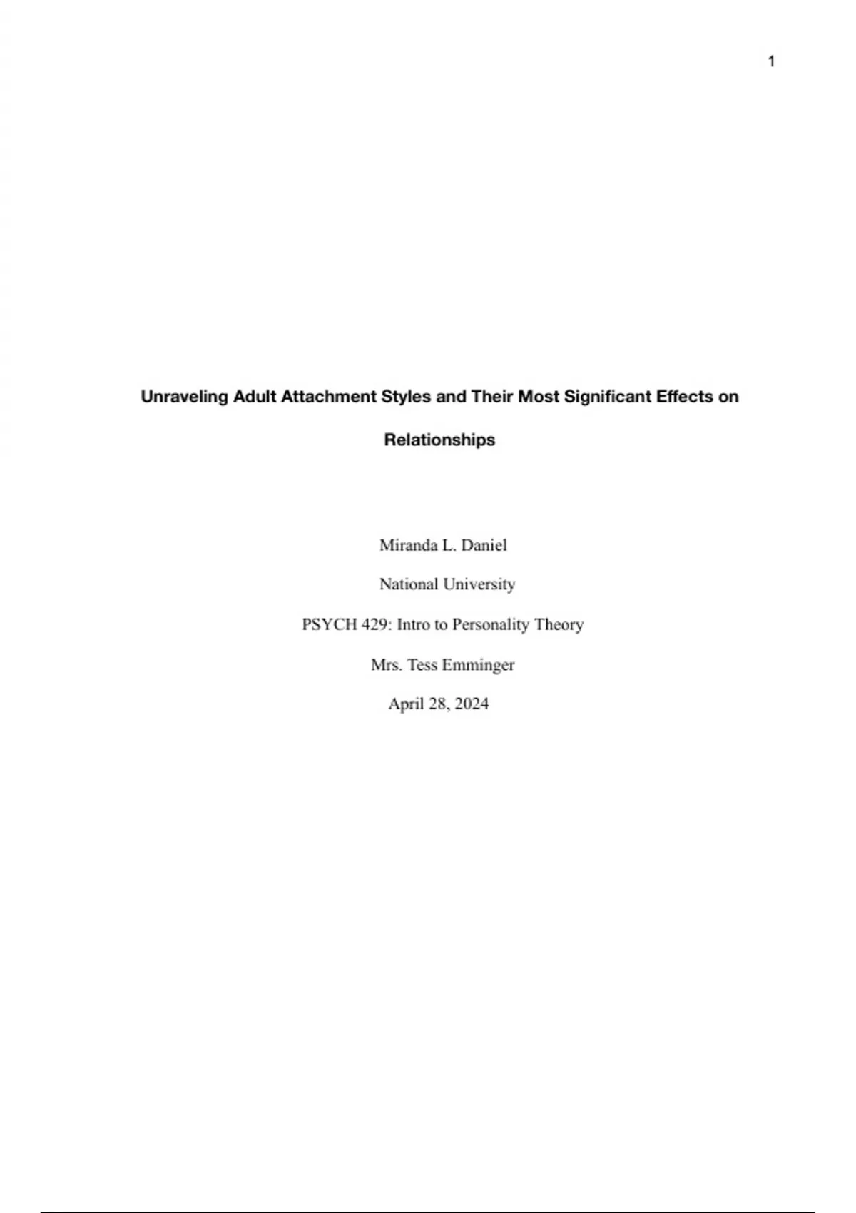 PSYCH 429: Intro to Personality Theory