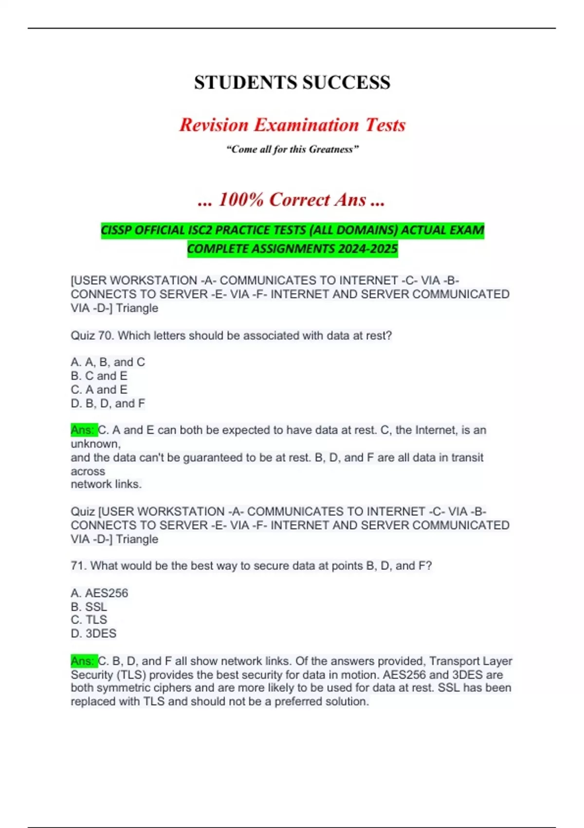Quiz 70. Which letters should be associated with data at rest?