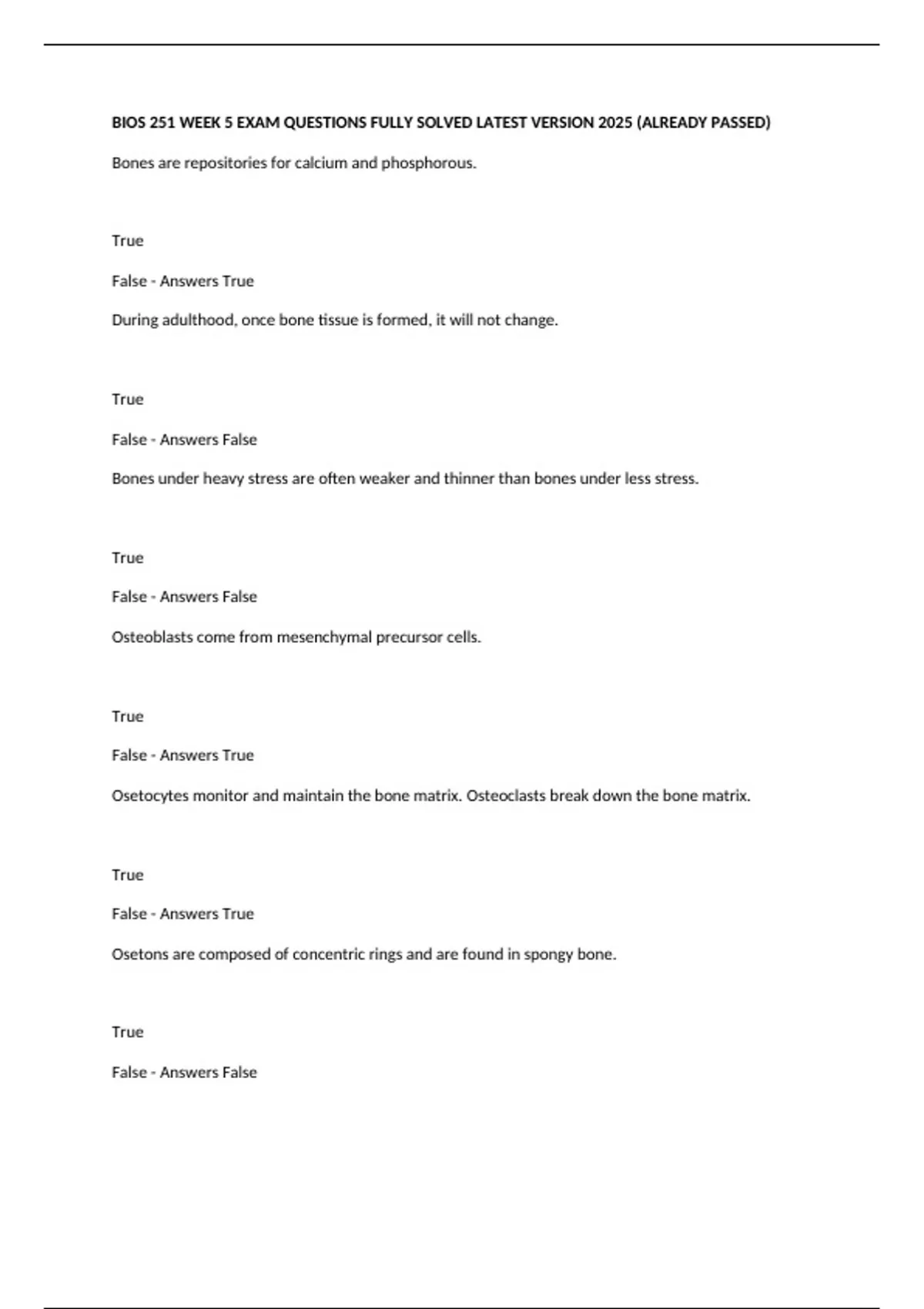 False - Answers True