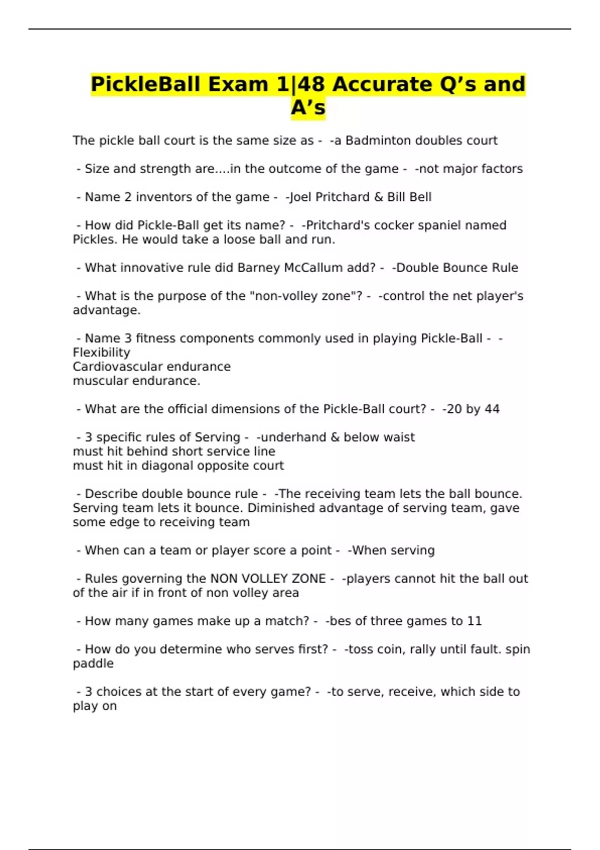 PickleBall Exam 1|48 Accurate Q’s and