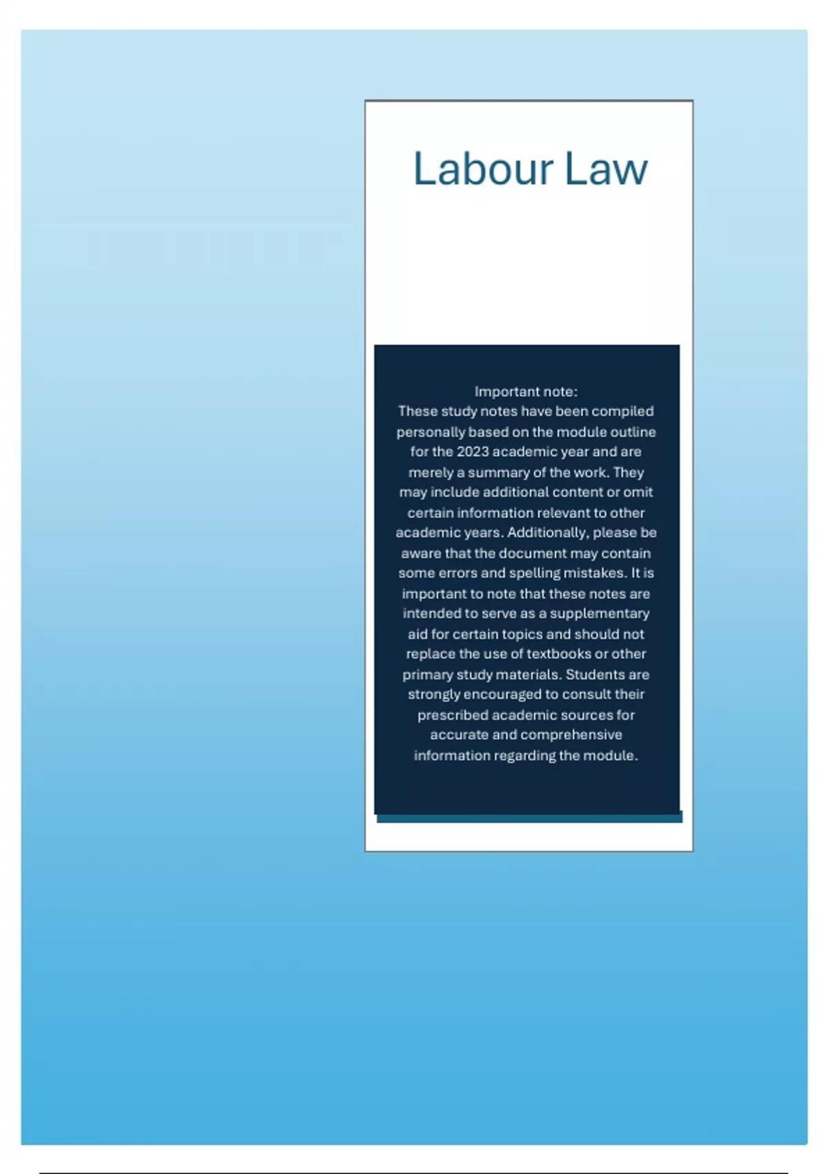 Labour Law Full Summaries Includes learning units 1-8 from the 2024 module outline from Varsity College.
