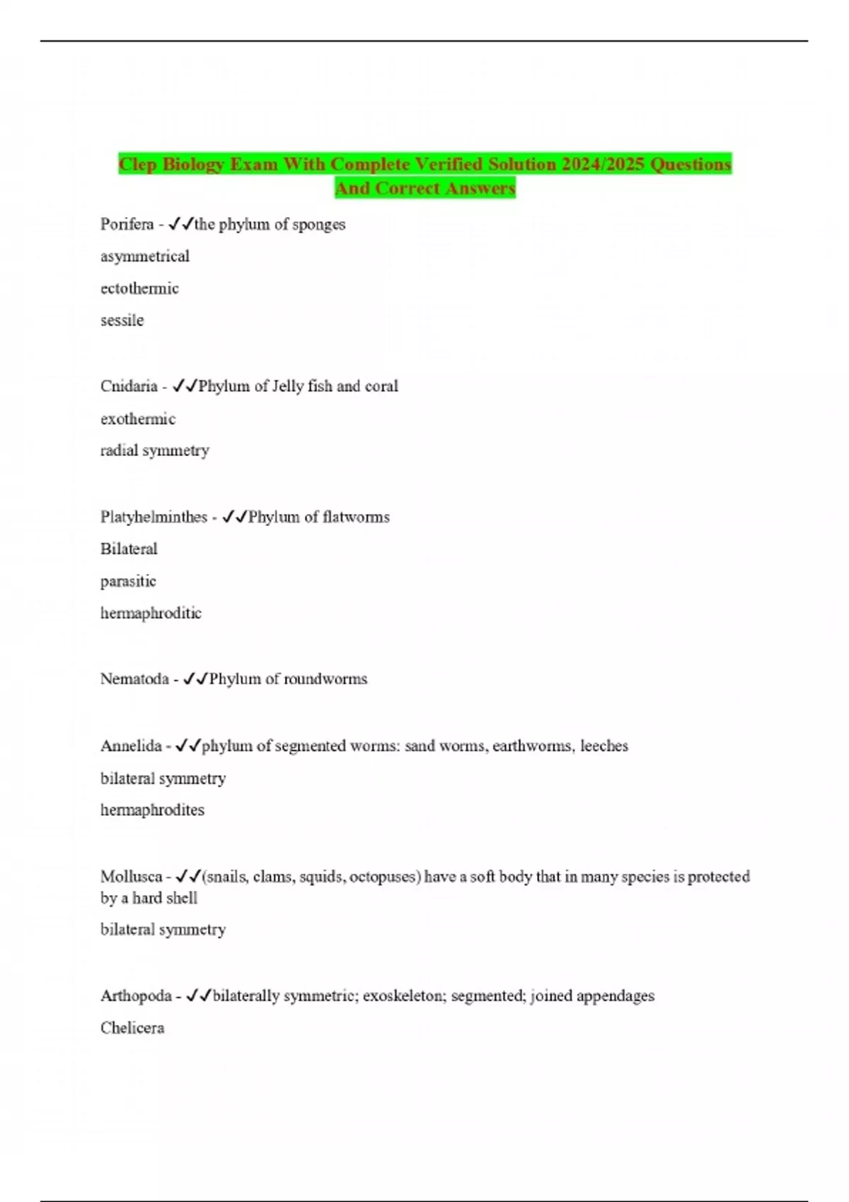 Clep Biology Exam With Complete Verified Solution 2024/2025 Questions And Correct Answers