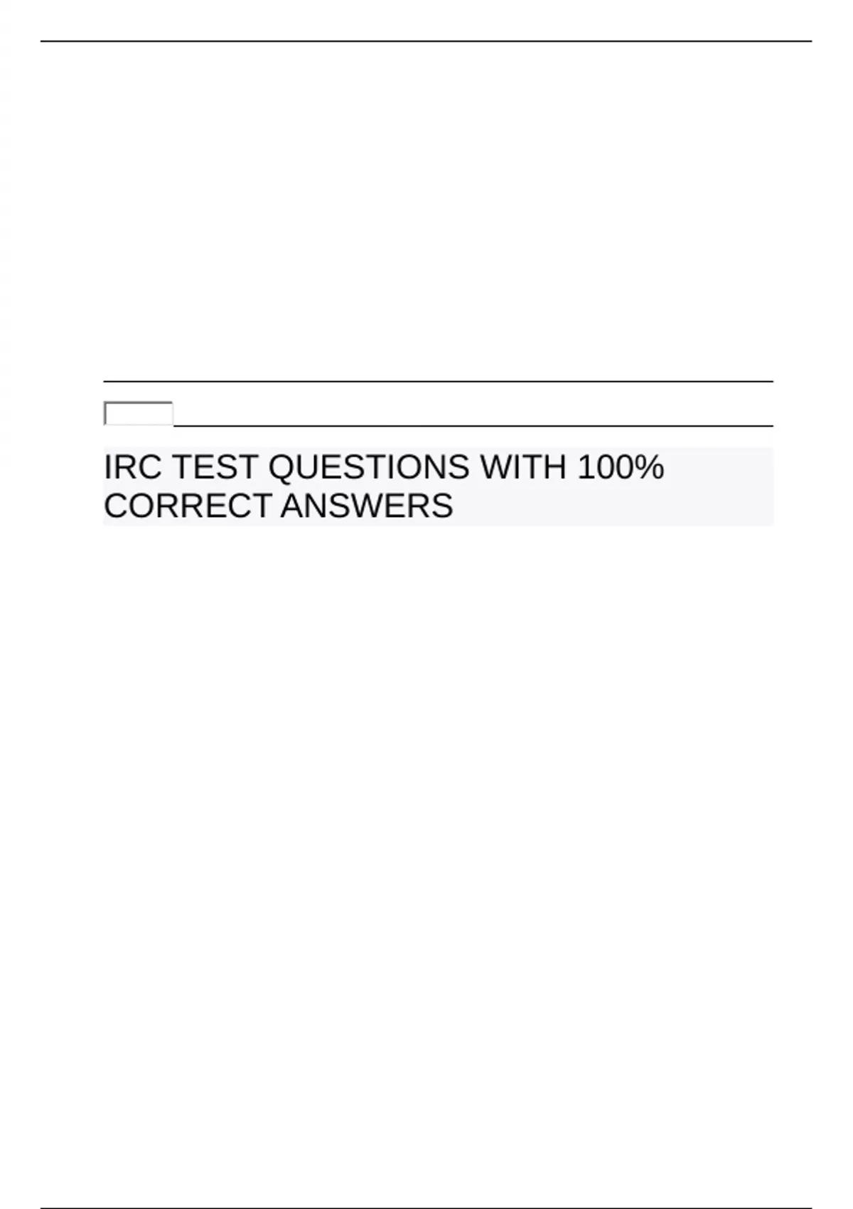 IRC TEST QUESTIONS WITH 100% CORRECT ANSWERS