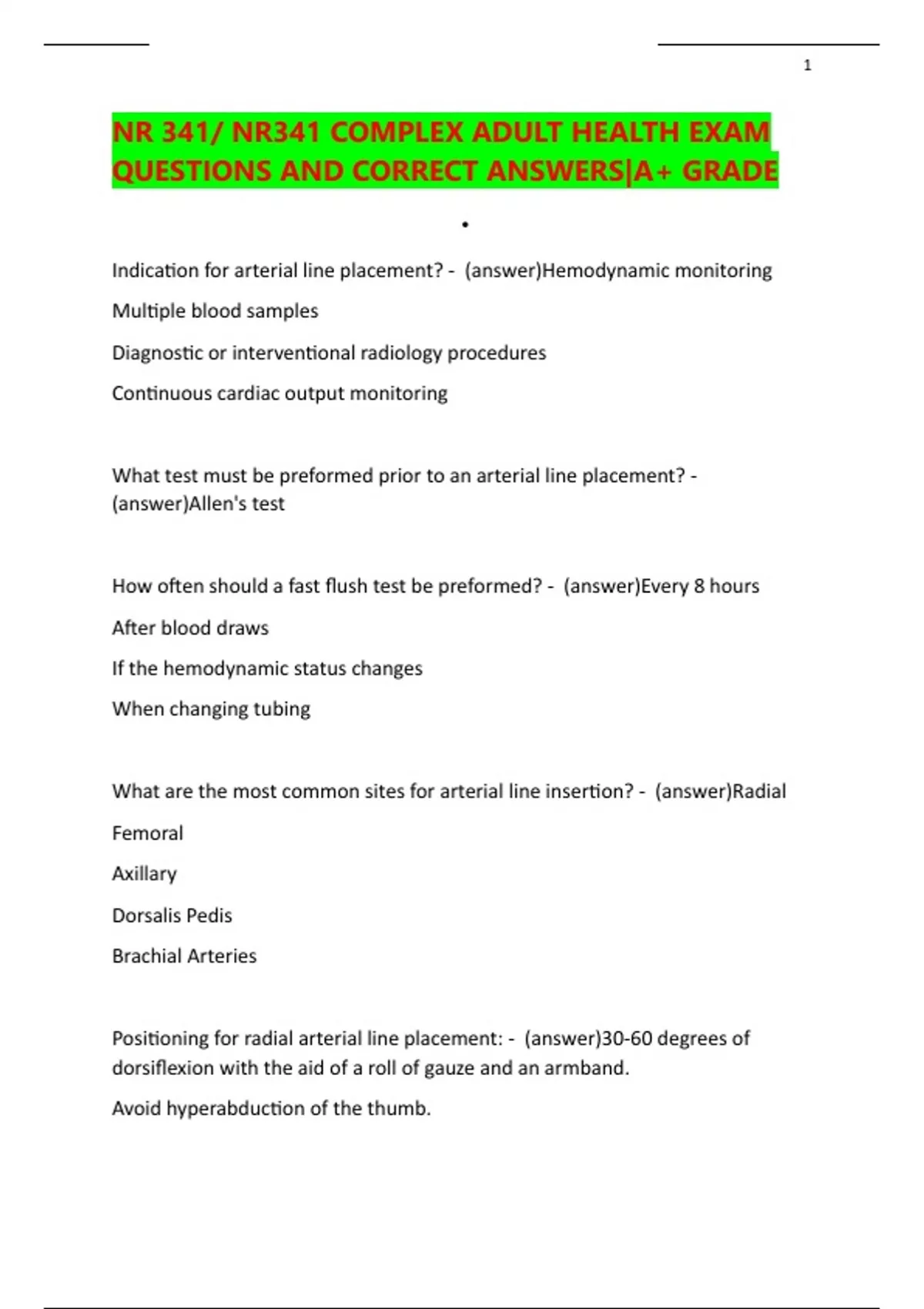 Indication for arterial line placement? - (answer)Hemodynamic monitoring