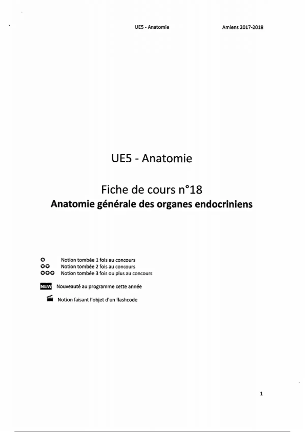 UE5 FC18 - Anatomie générale des organes endocriniens + Annales classées corrigées