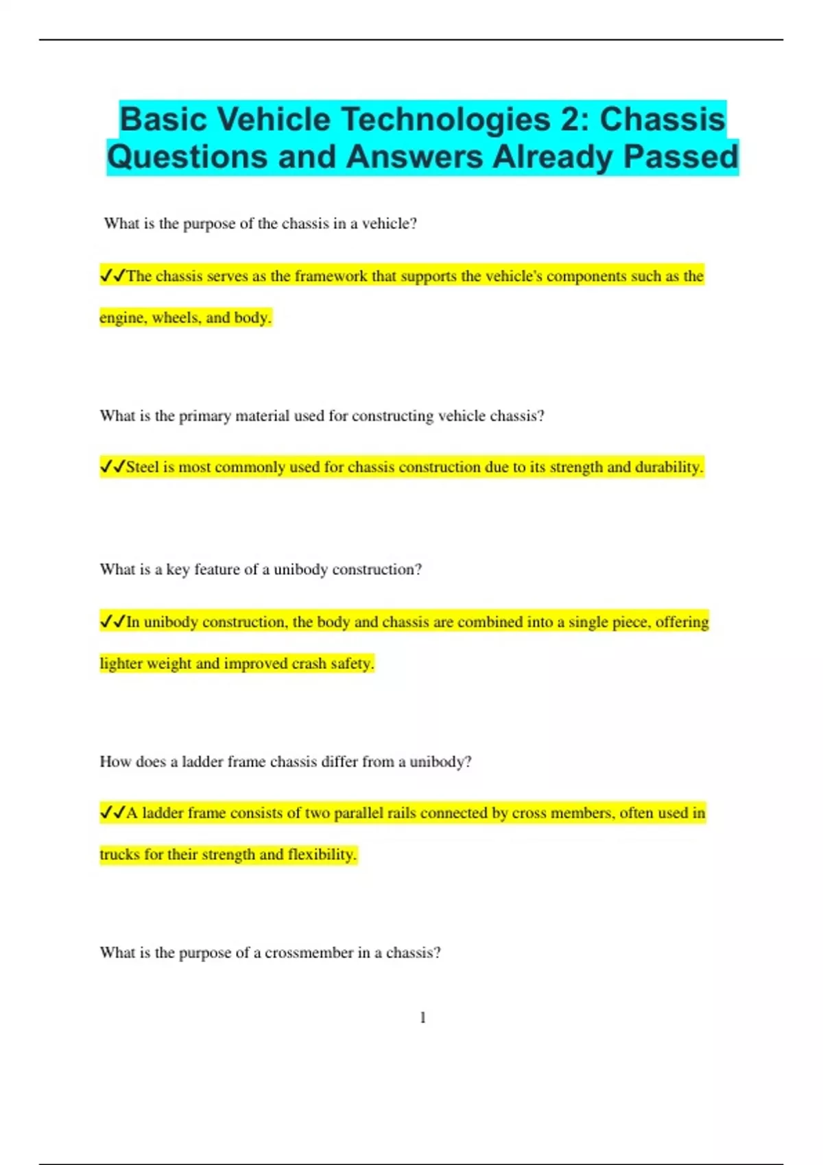 ✔✔Steel is most commonly used for chassis construction due to its strength and durability.