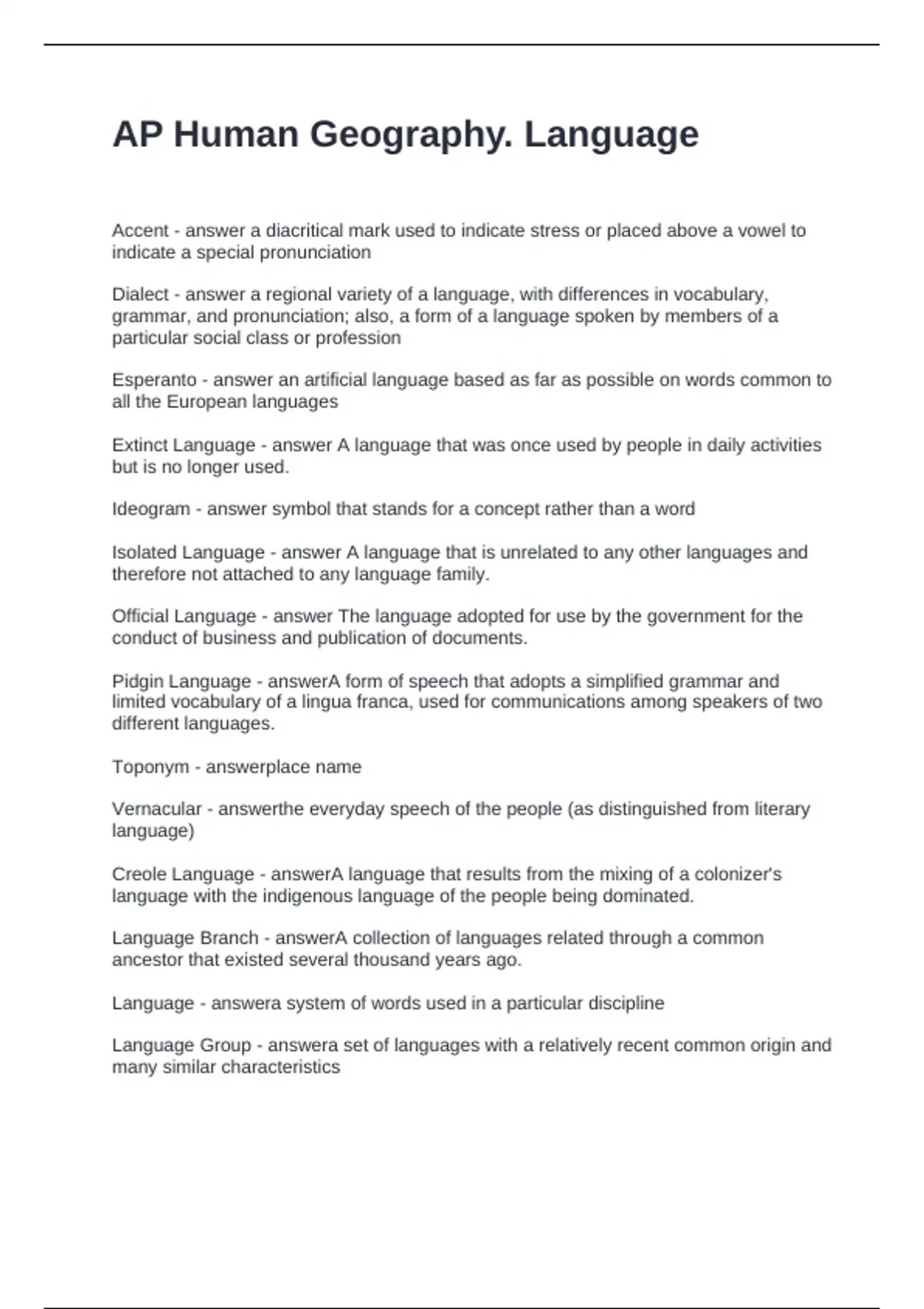AP Human Geography. Language