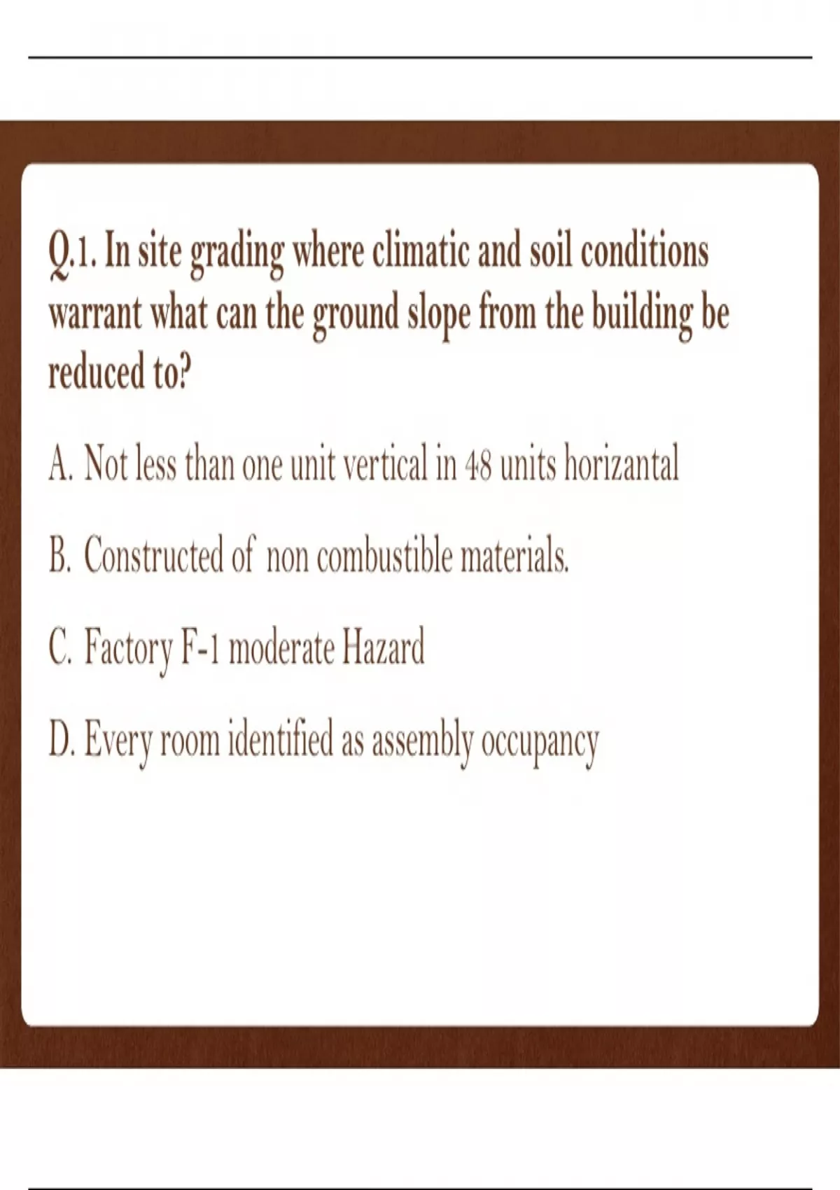 ,Q.2. In type I and II construction, sloped glazing framing