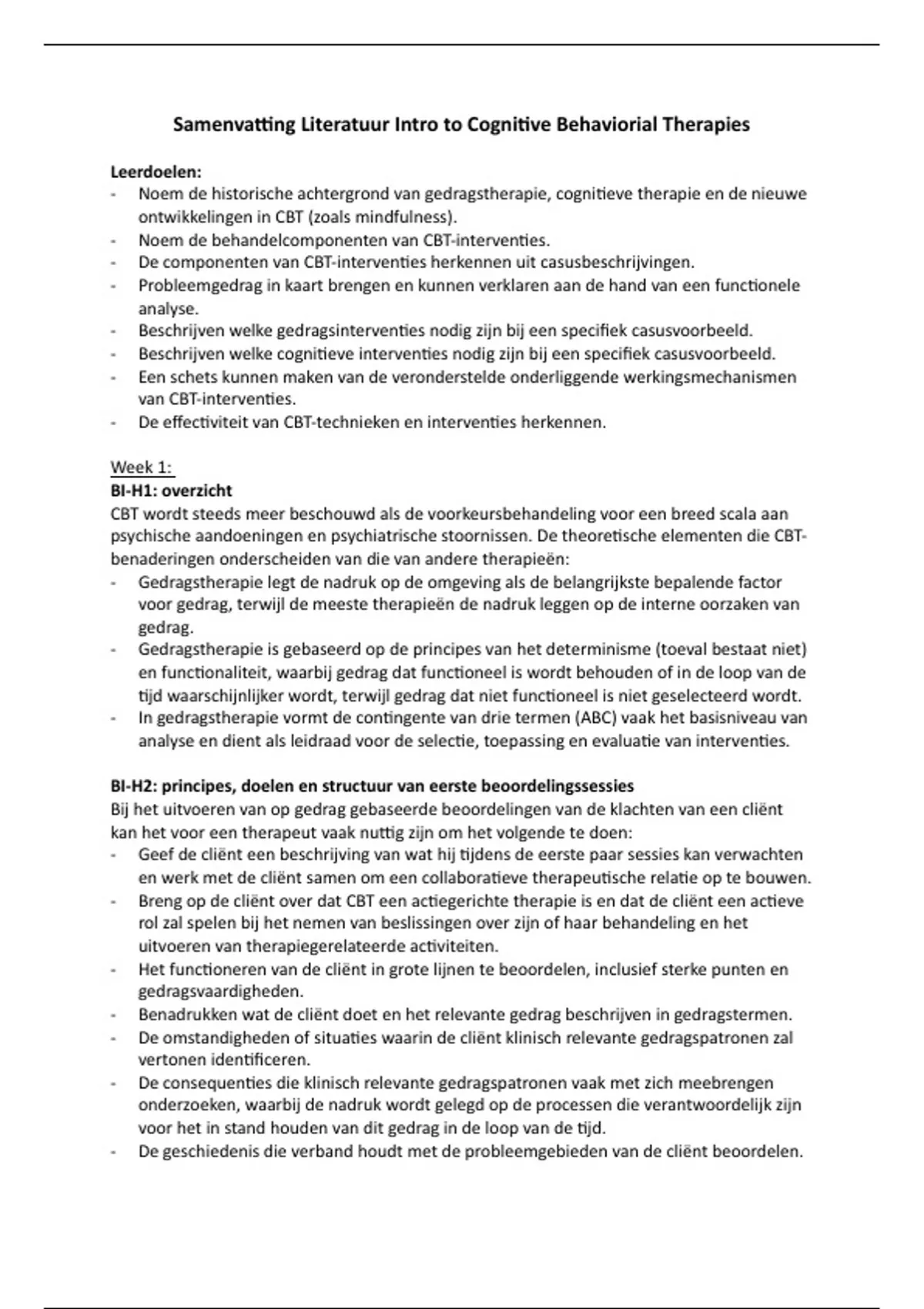 Samenvatting Literatuur Intro to Cognitive Behaviorial Therapies