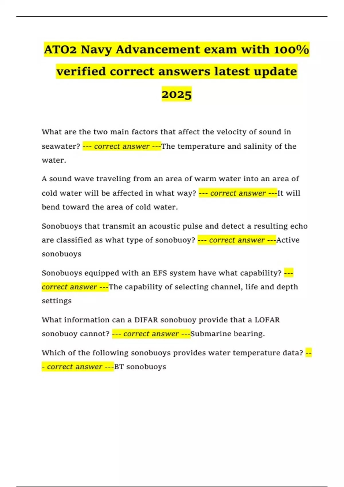 correct answer ---Sonobuoy bearing information with respect to