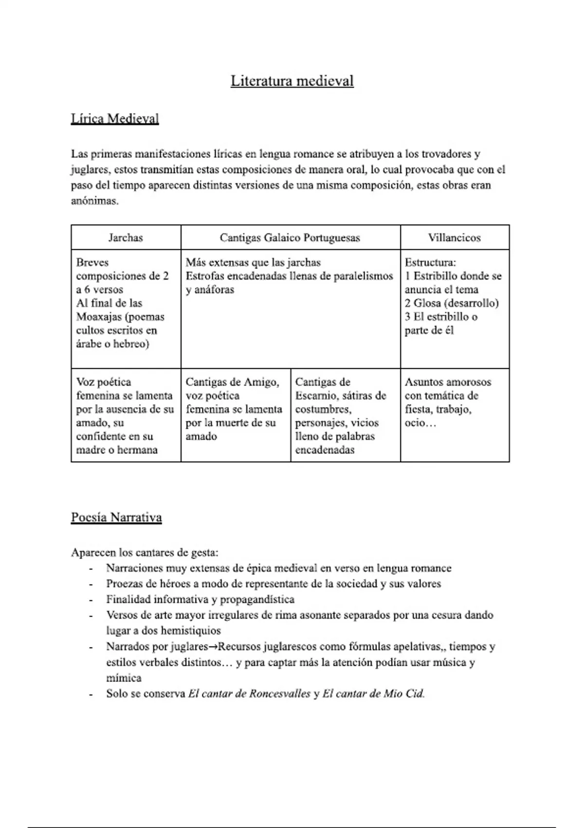 Apuntes claros y concisos de la literatura medieval de primero de bachillerato.