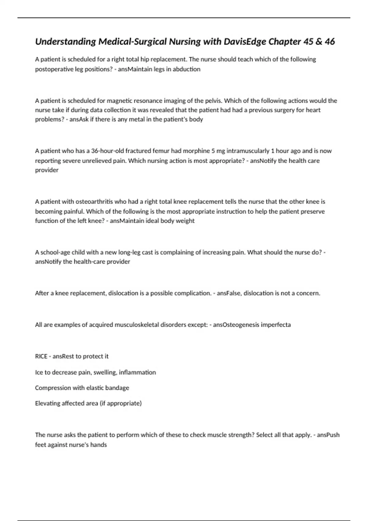 reporting severe unrelieved pain. Which nursing action is most appropriate? - ansNotify the health care