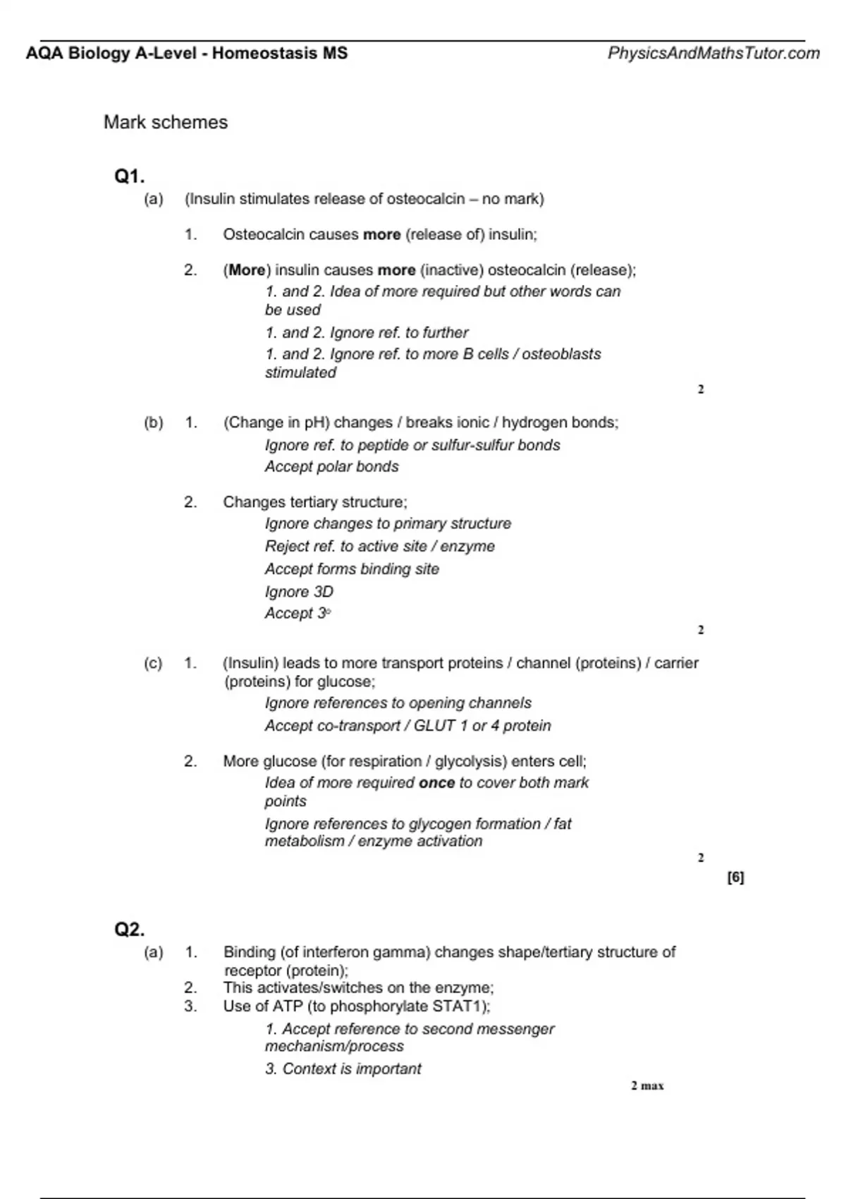 AQA Biology A-Level - Homeostasis MS PhysicsAndMathsTutor.com