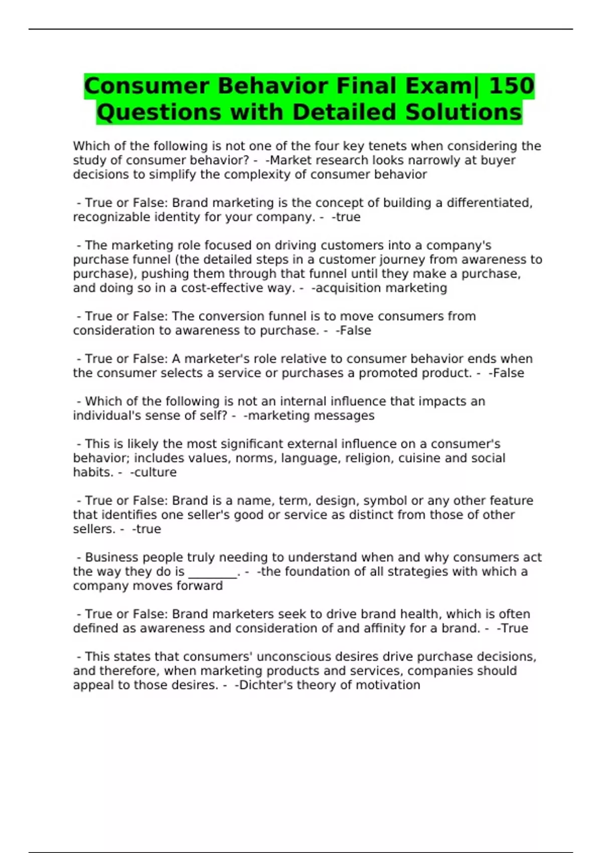 Consumer Behavior Final Exam| 150
