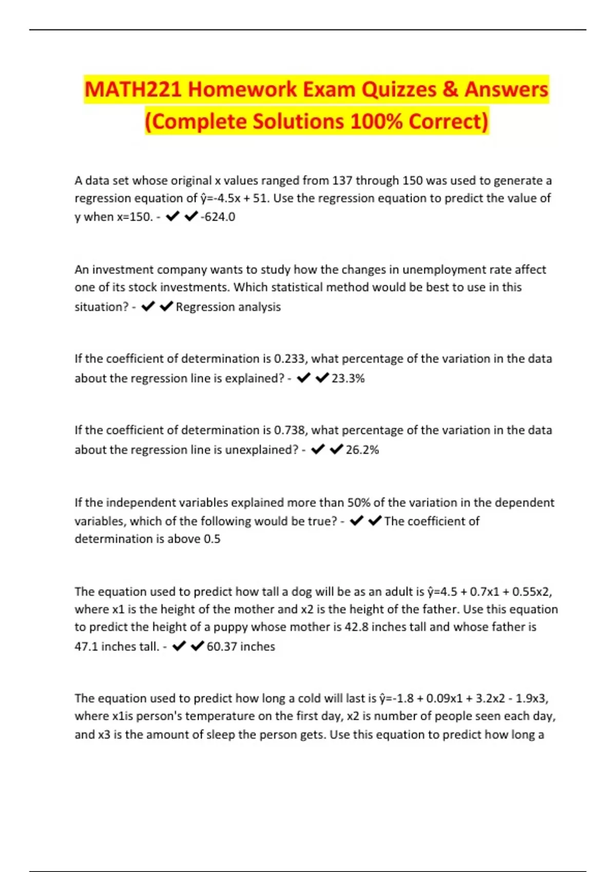 MATH221 Homework Exam Quizzes & Answers (Complete Solutions 100% Correct)