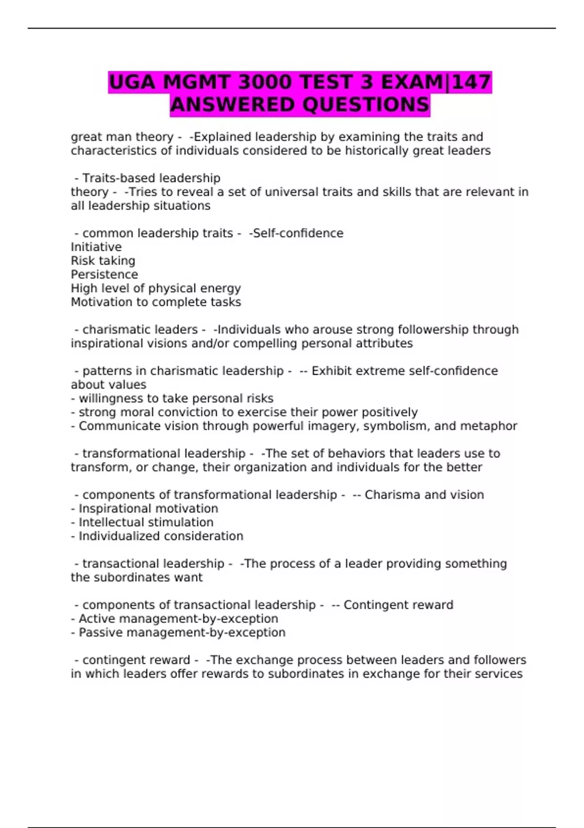UGA MGMT 3000 TEST 3 EXAM|147